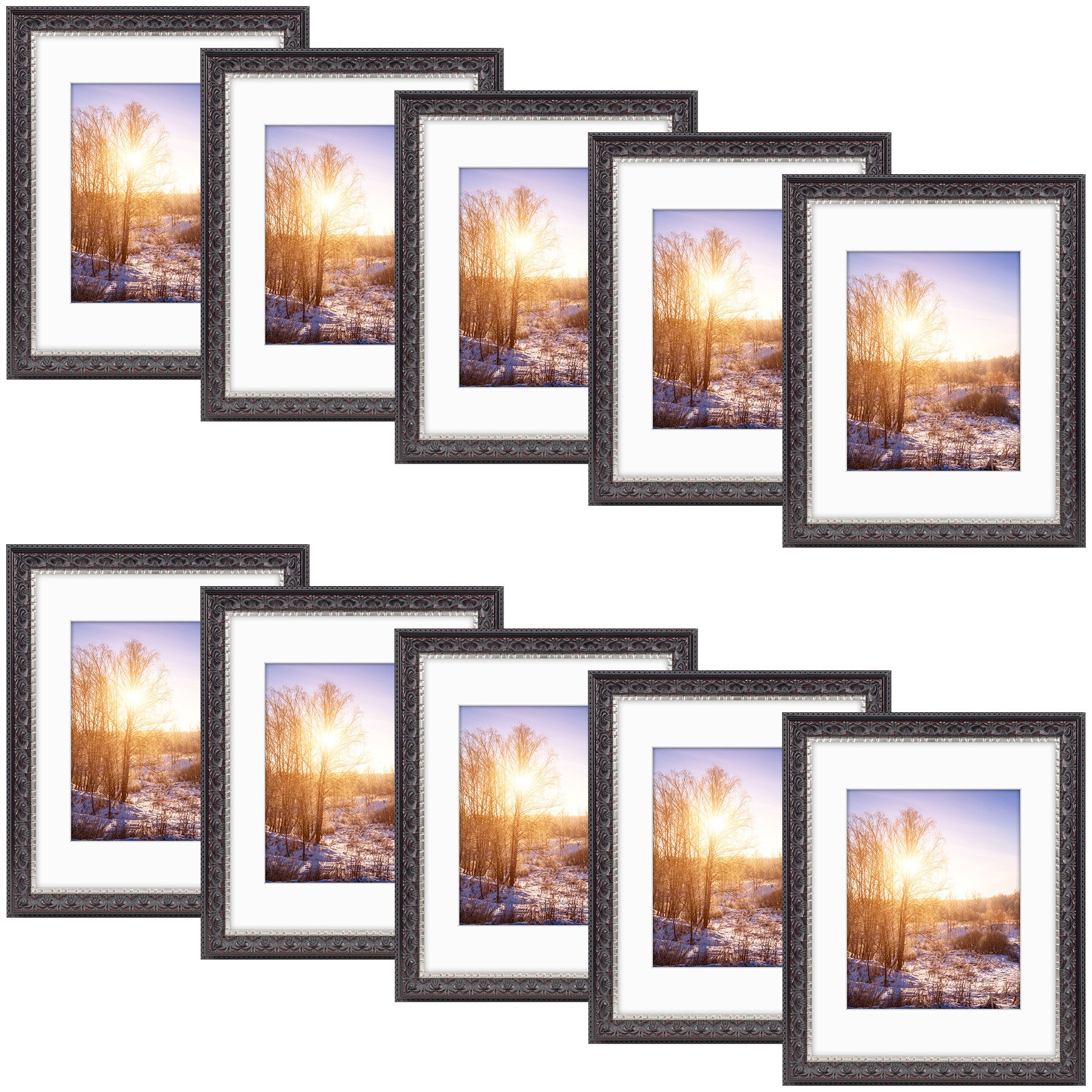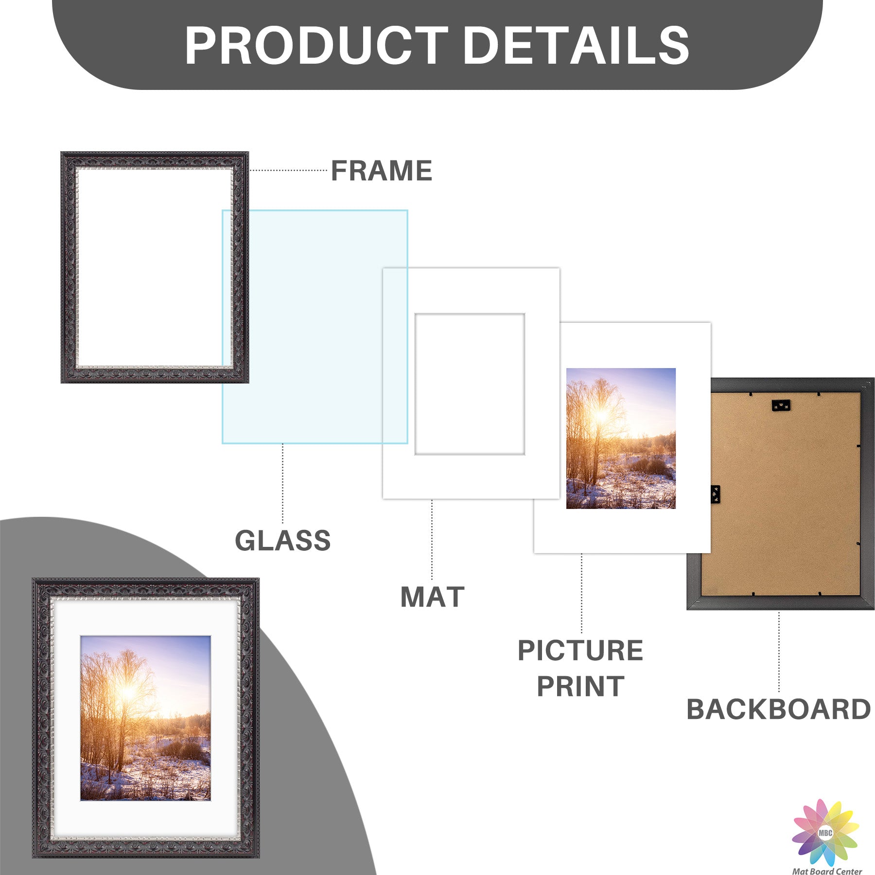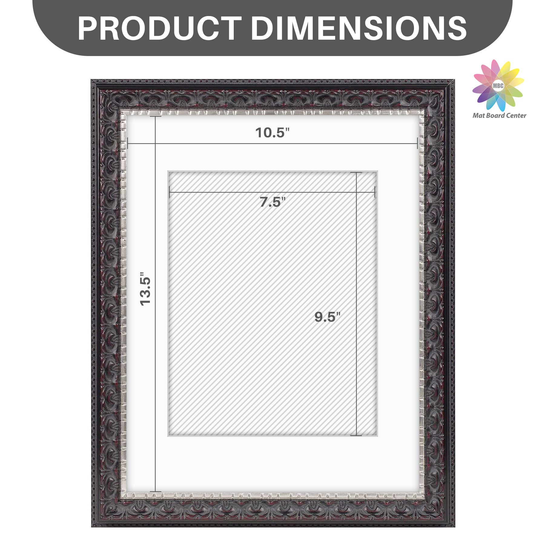 11x14 Ornate Picture Frame With White Mat For 8x10 Pictures Black With Silver & Burgundy (10 Pcs per Box)