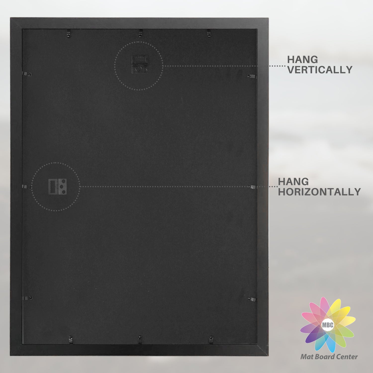Includes pre-installed sawtooth hangers for easy vertical or horizontal wall mounting.