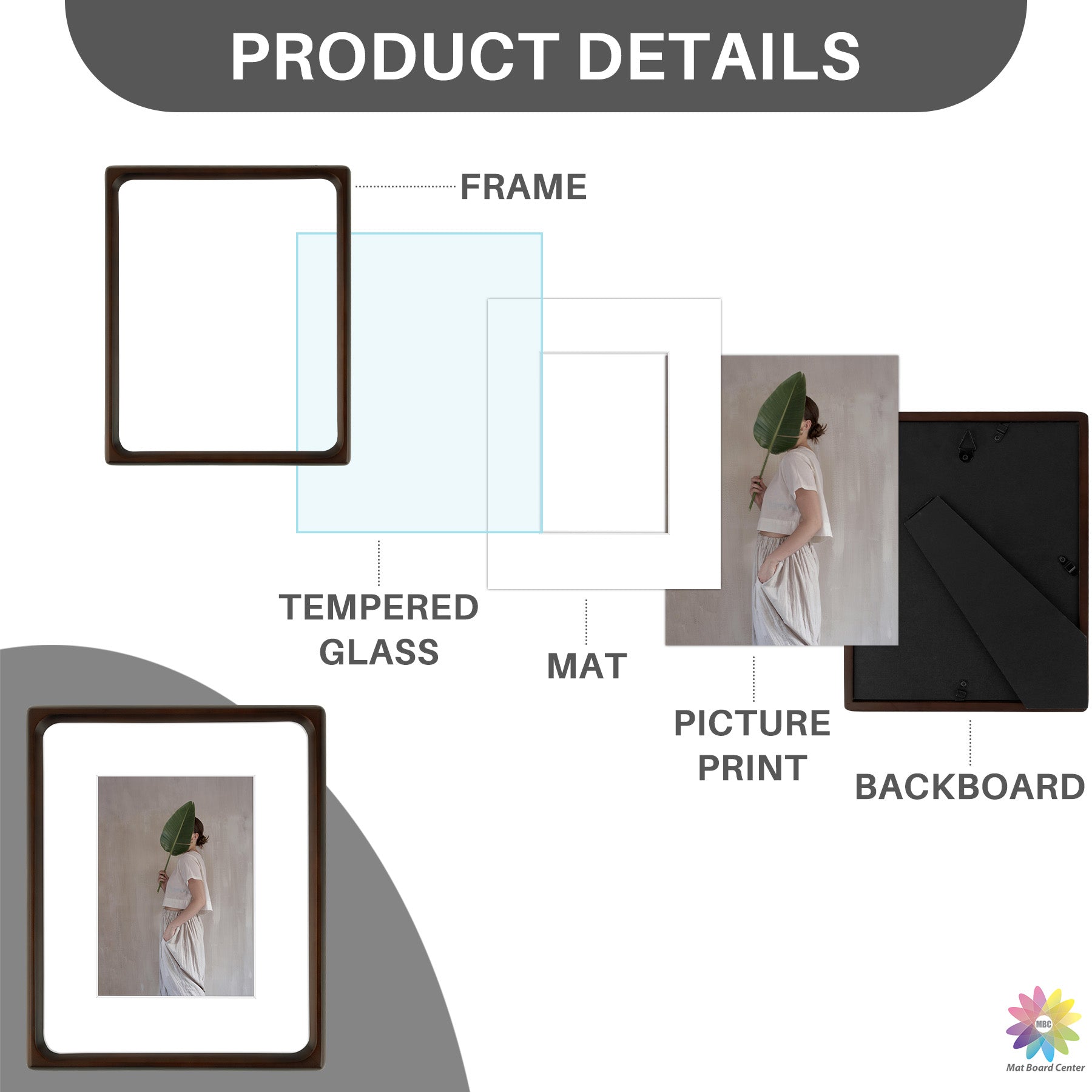 Rounded Corner 8x10 Wood Frame For 5x7 Photos With White Mat and Real Glass Brown (6 Pcs per Box)