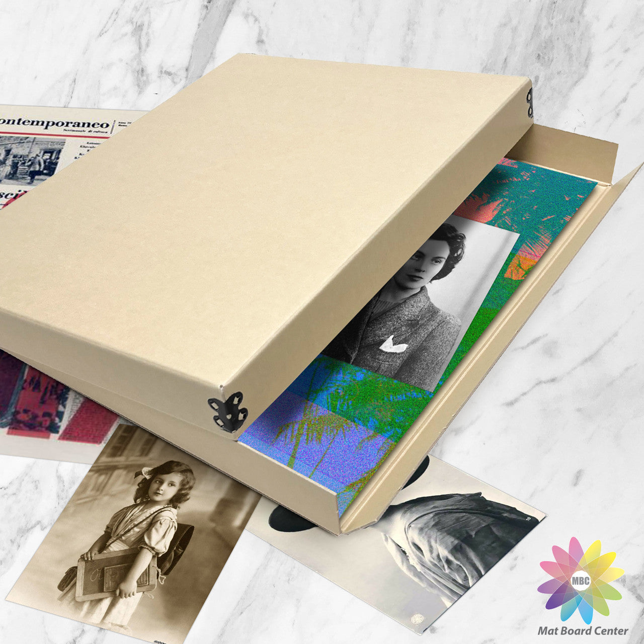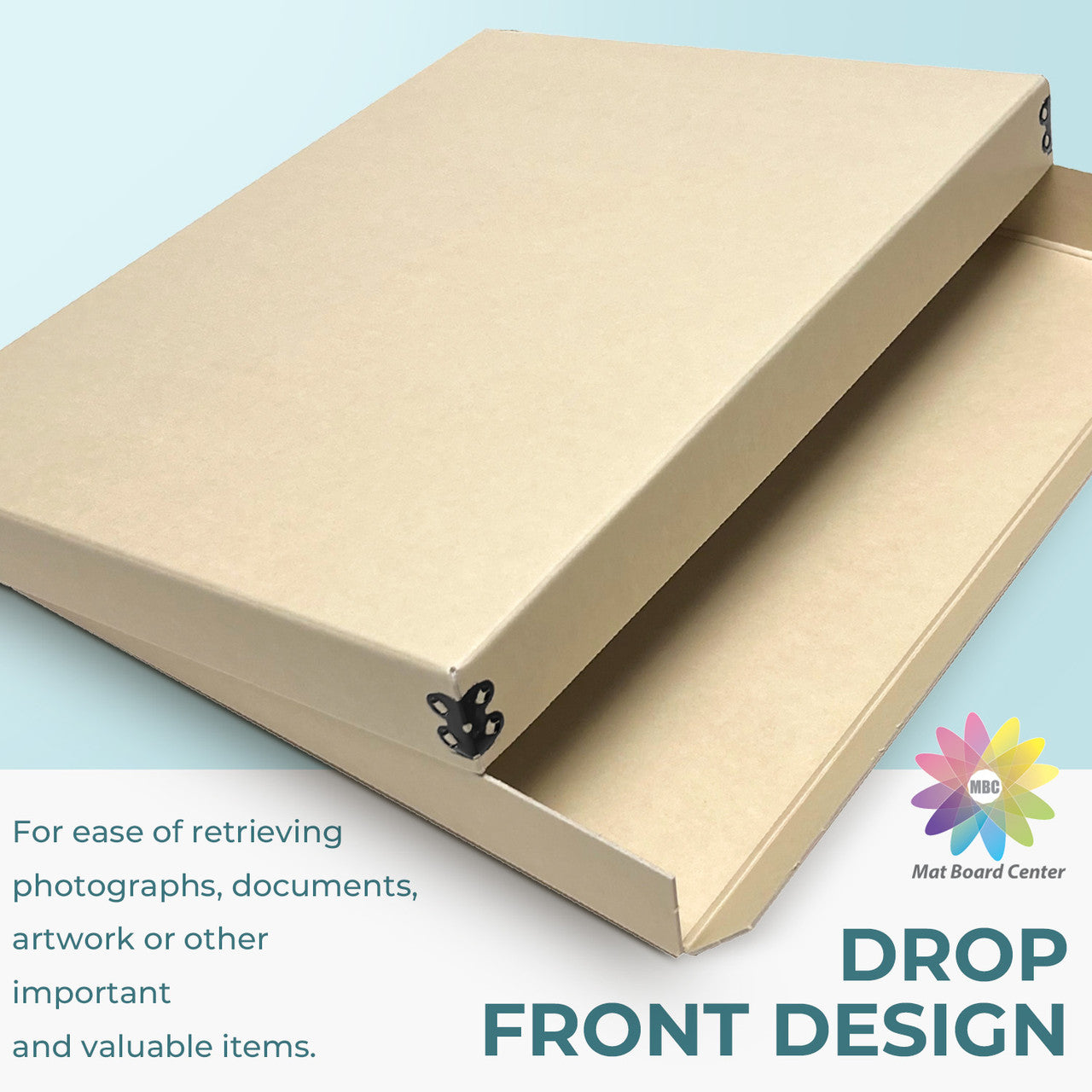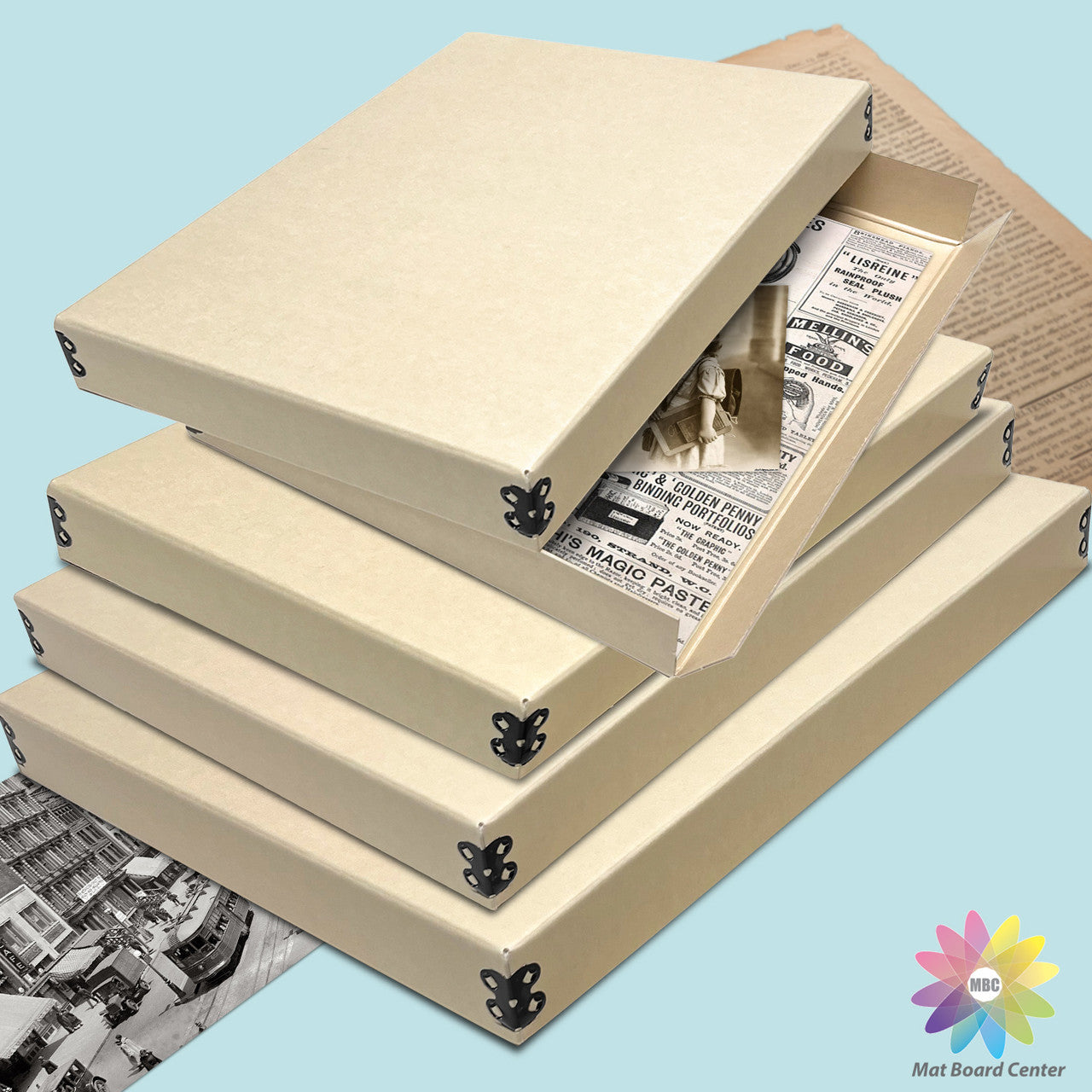 Lineco metal edge storage boxes are acid-free, lignin-free, made with 60 point board, and designed with a drop front for ease of retrieving photographs, documents, artwork or other important and valuable items. Acid, airborne pollutants, light and dirt can attack your treasured possessions causing them to deteriorate, fade and discolor. Lineco archival storage boxes defend against these contaminants to protect your treasured possessions for generations to come.