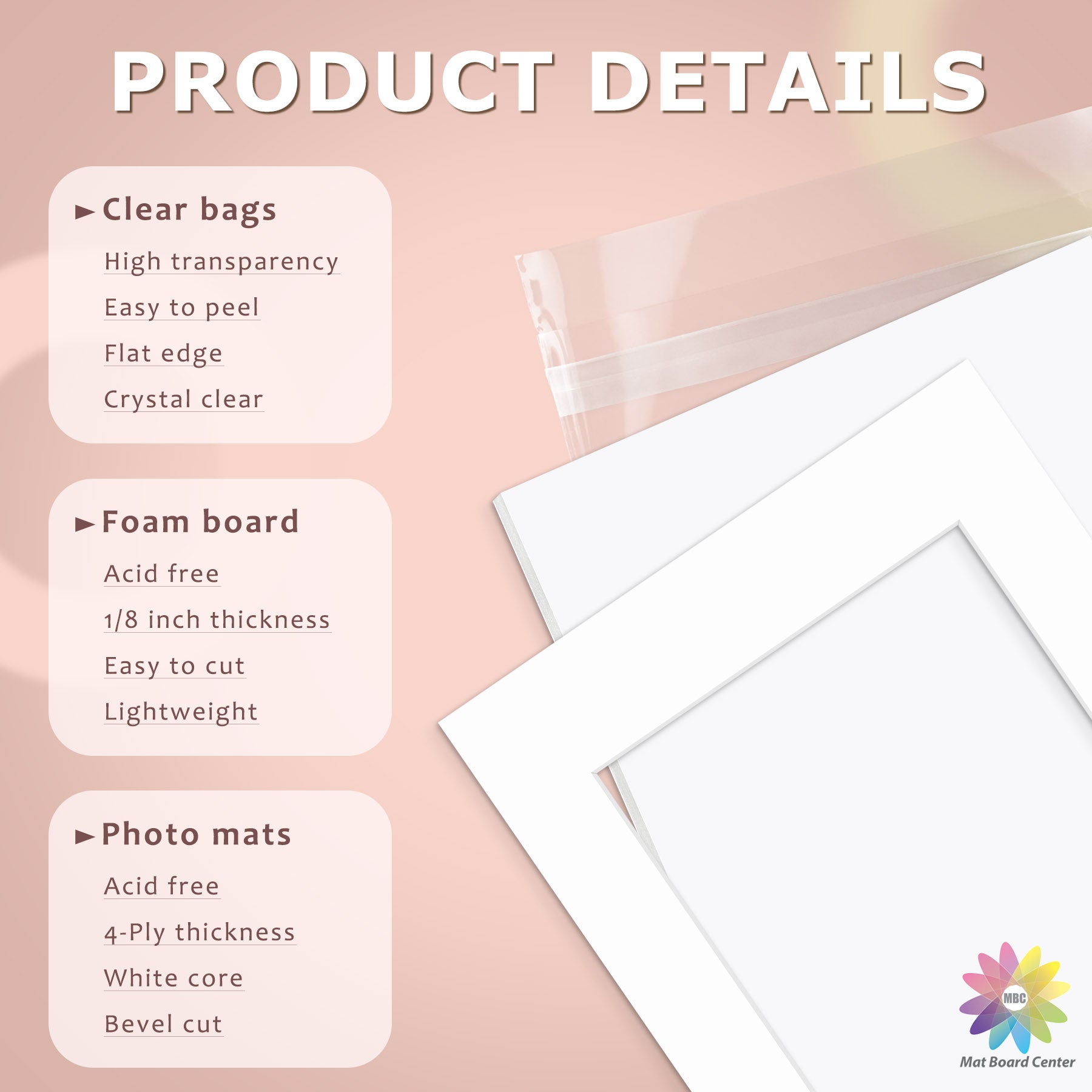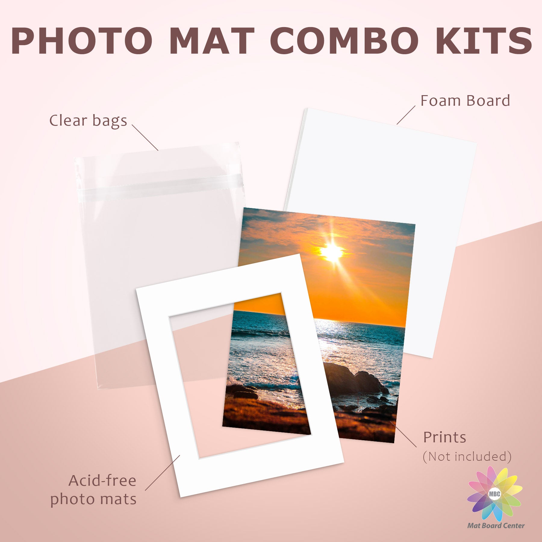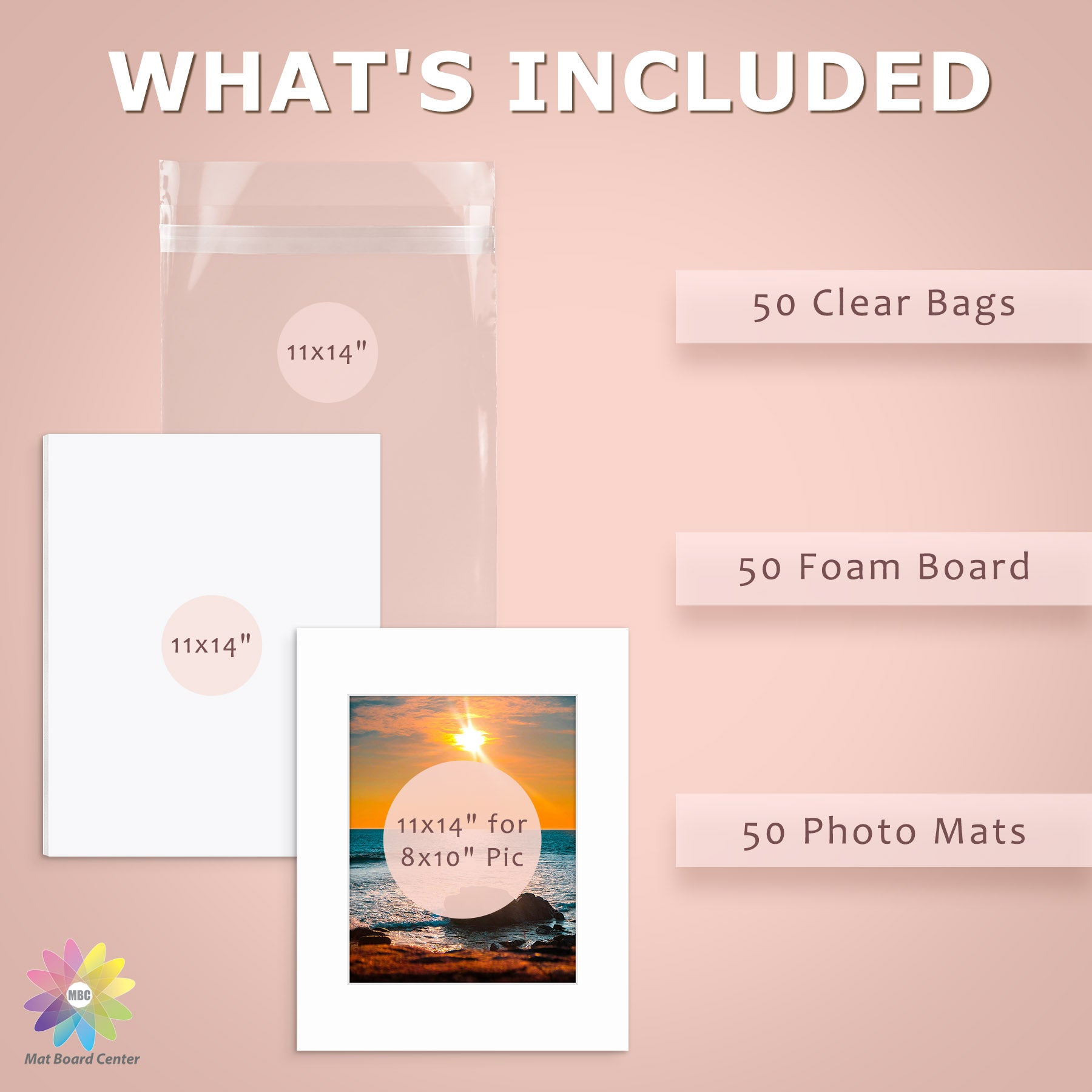 50 Pack 11x14 Whitecore Pre-Cut Mat Board + White Foam Board + Bag