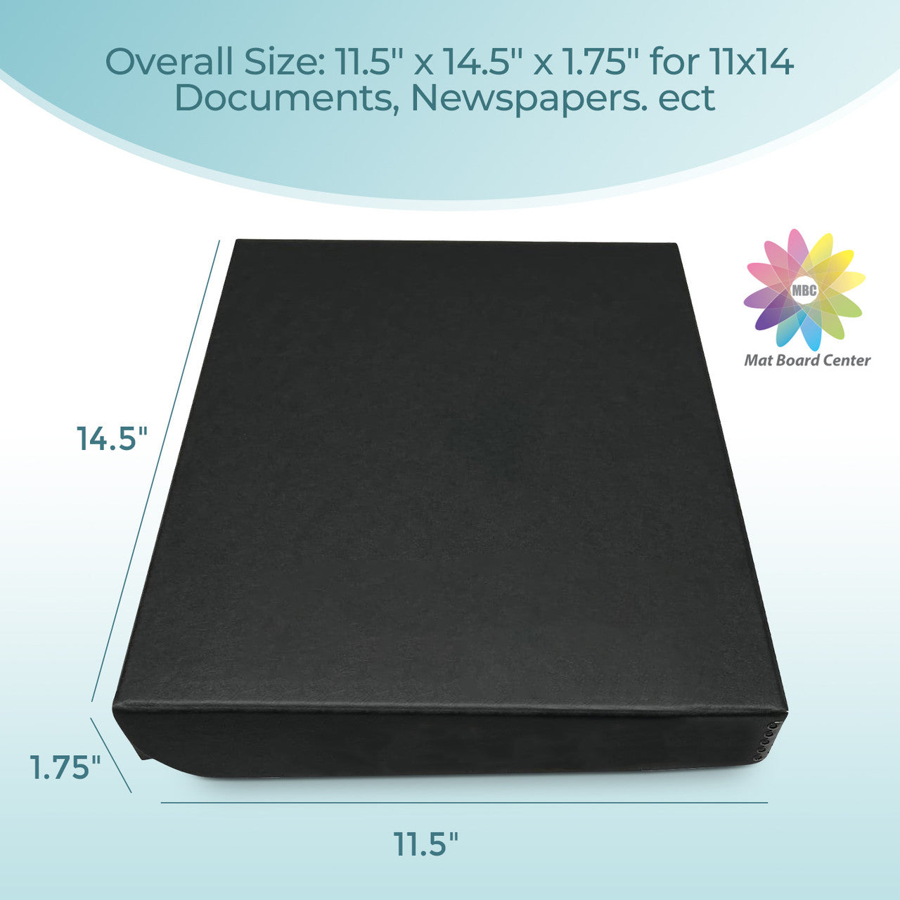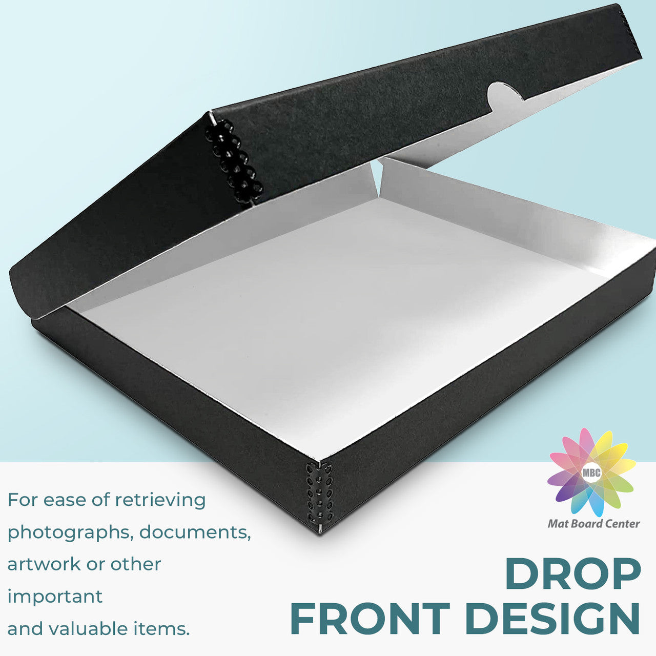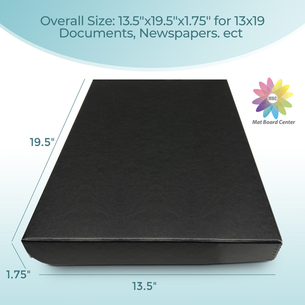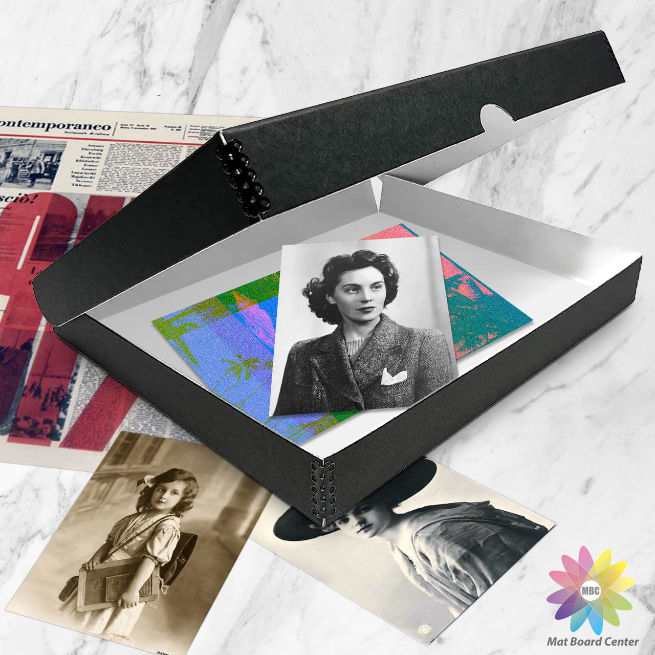 Available in traditional black and gray museum grade archival boxboards. These folio boxes are excellent for both artists and photographers with box sizes to accommodate standard sheet sizes. Everyday use includes storage of important documents, maps, newspapers, and other personal items.