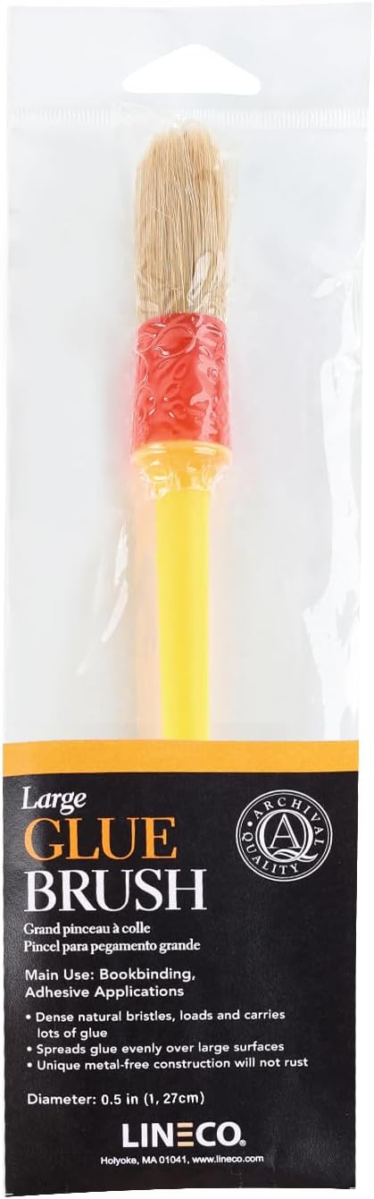 Designed for bookbinding and adhesive applications, the dense natural bristles load and carry lots of glue and spread glue evenly over large surfaces. Metal free construction will not rust.
