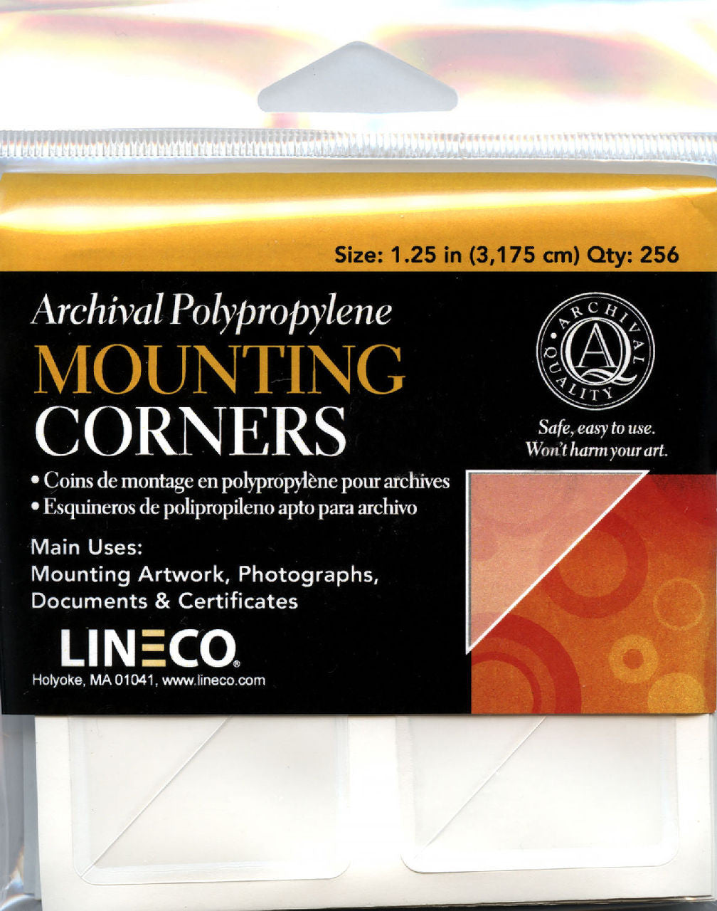 Pressure sensitive Archival Mounting Corners virtually disappear on the page, yet hold your artwork firmly in place.