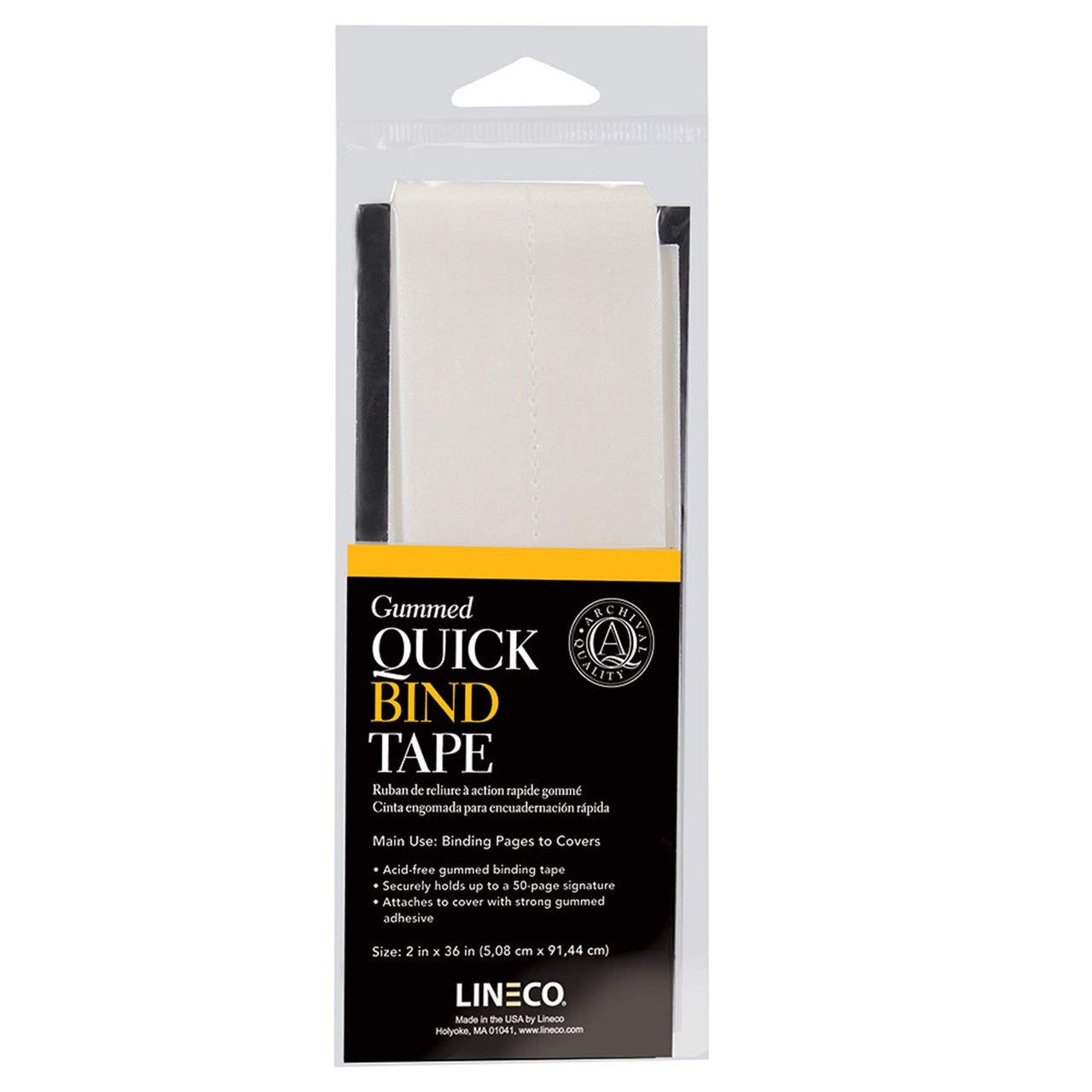 This 2 by 36 inch Quick Bind Gummed Tape by Lineco is ideal for making quick books. Featuring two pieces of white gummed tape sewn together with the adhesive facing outward, the pamphlet is attached to one side, with the covers attached to the other side to form a book.