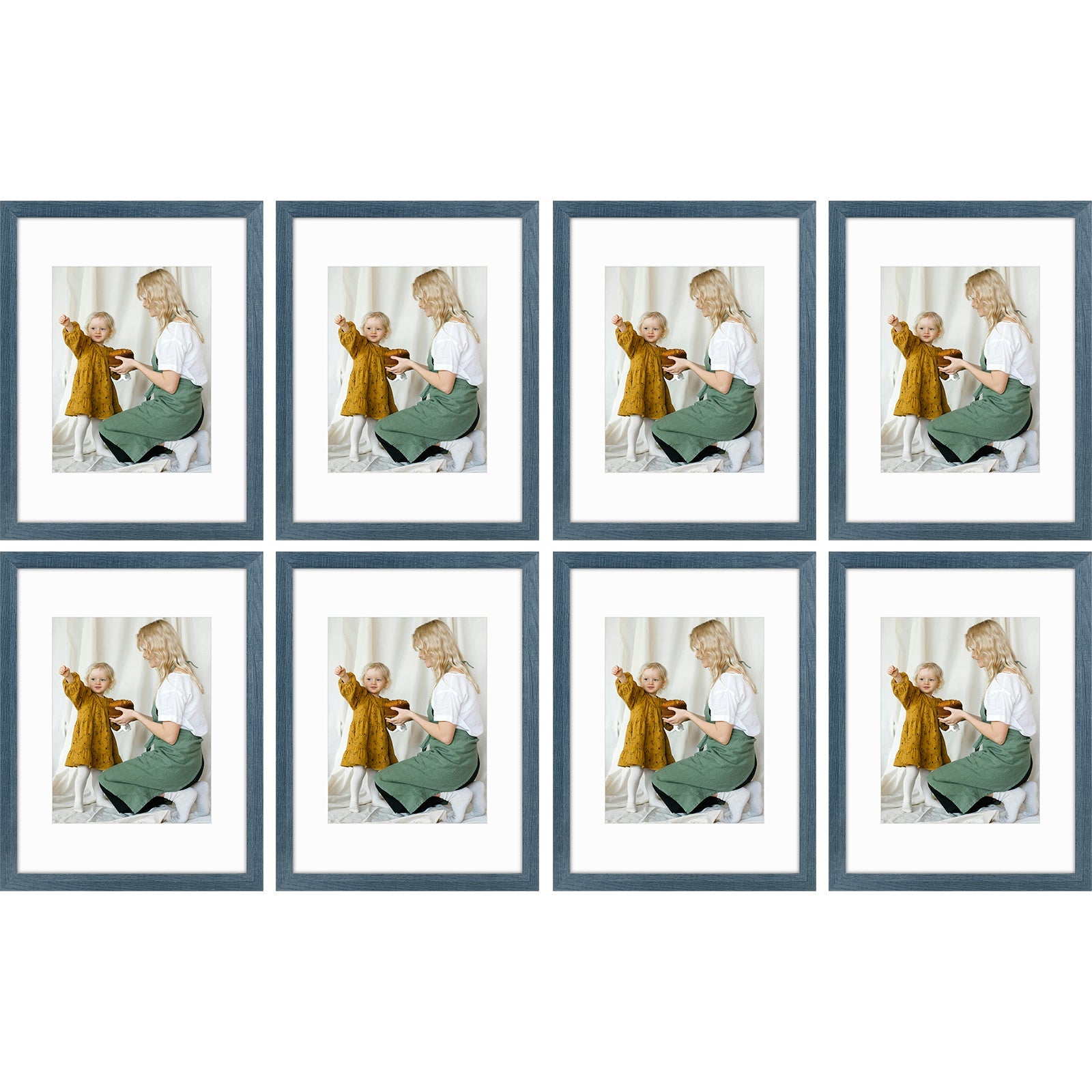 12x16 Picture Frame for 8.5x11 Photo with White Mat and Plexiglass (8 Pcs Per Box) Blue