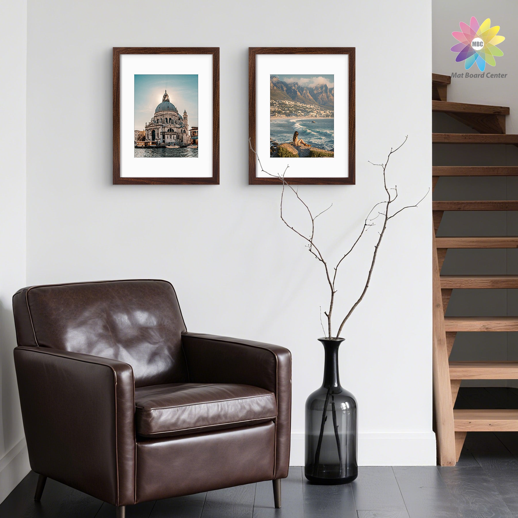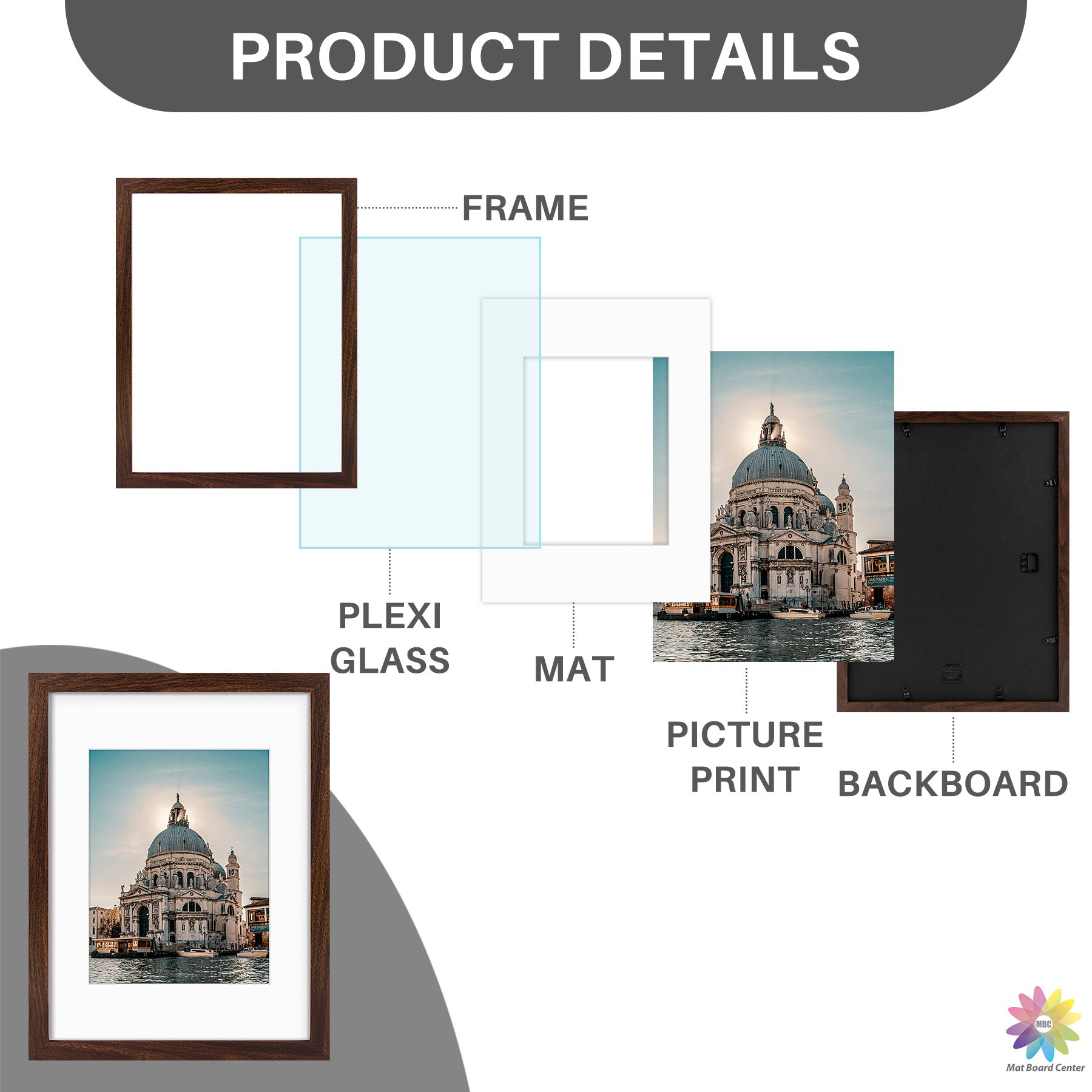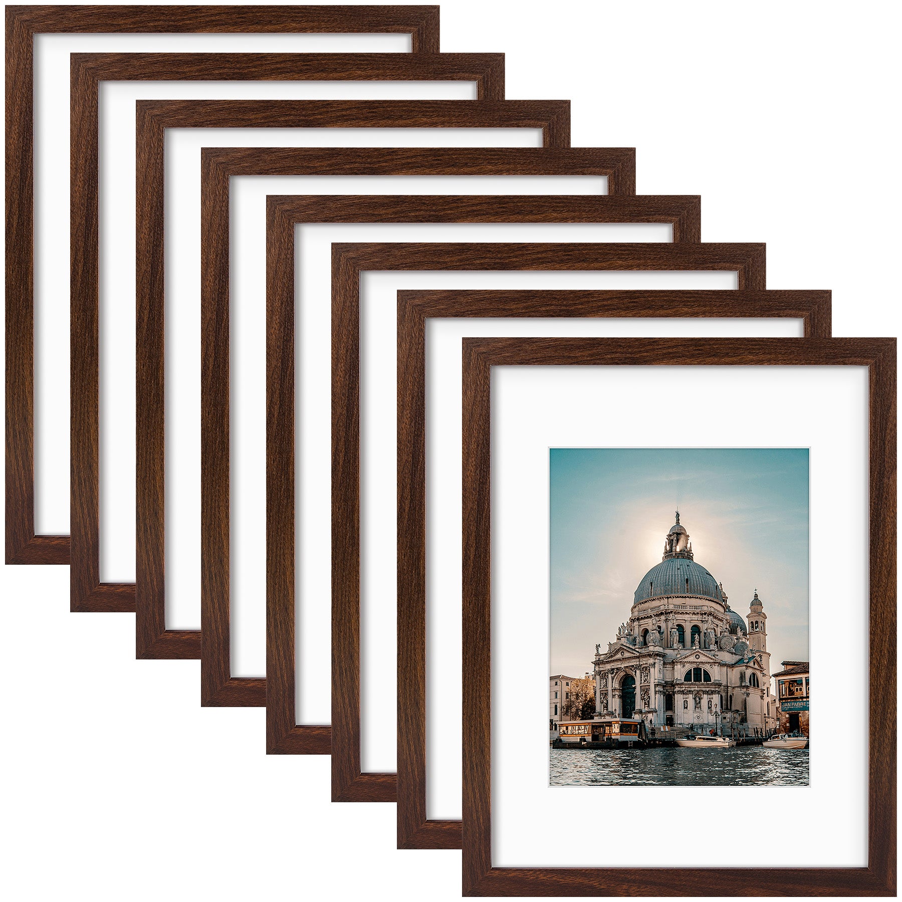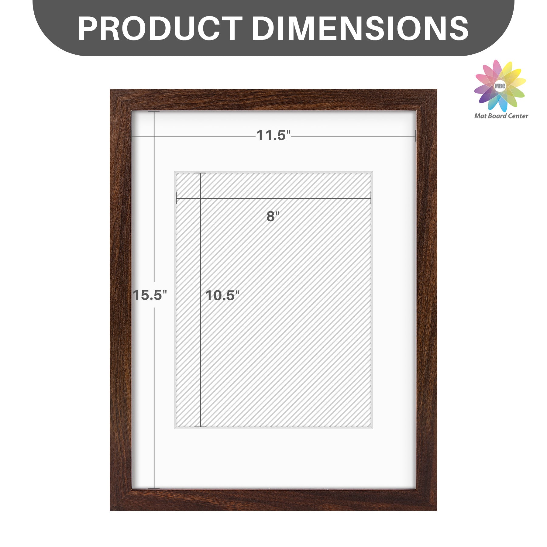 12x16 Picture Frame for 8.5x11 Photo with White Mat and Plexiglass (8 Pcs Per Box) Brown