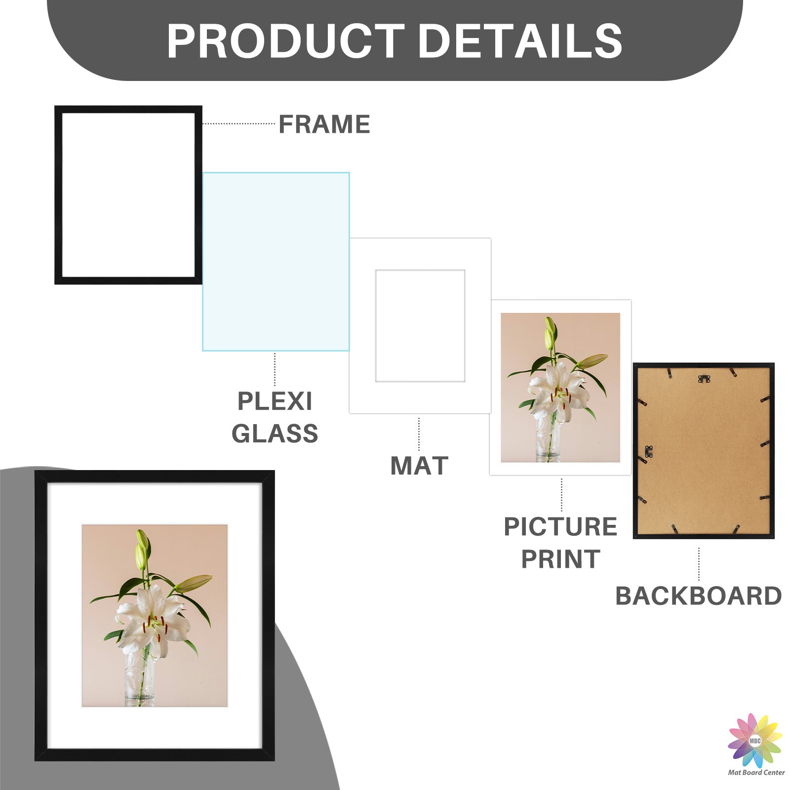 Clearance 16x20 Picture Frames for 11x14 Photo with White Mat and Plexiglass (9 Pcs Per Box) Black
