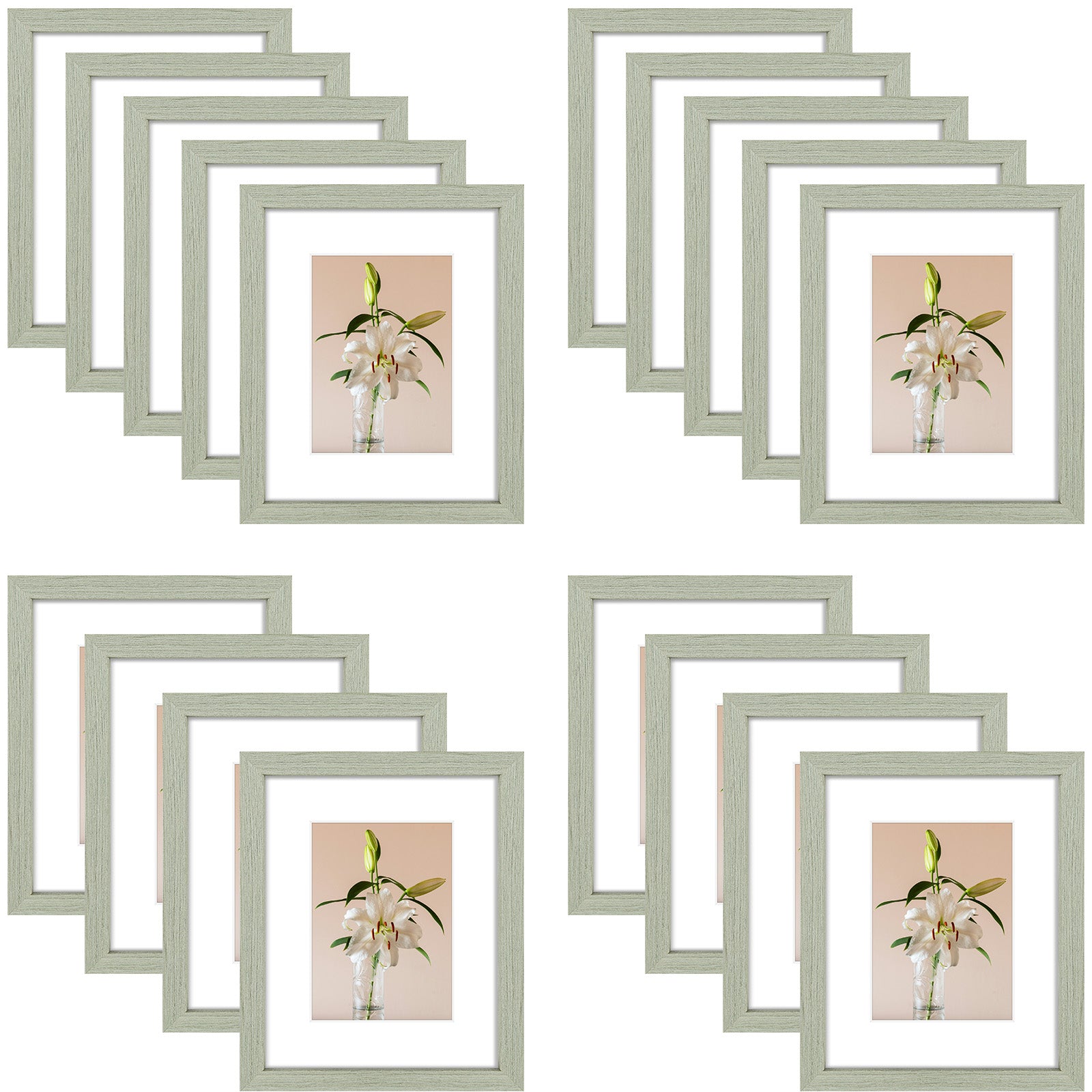 Clearance 8x10 Picture Frames for 5x7 Photo with White Mat and Plexiglass (18 Pcs Per Box) Light Grey