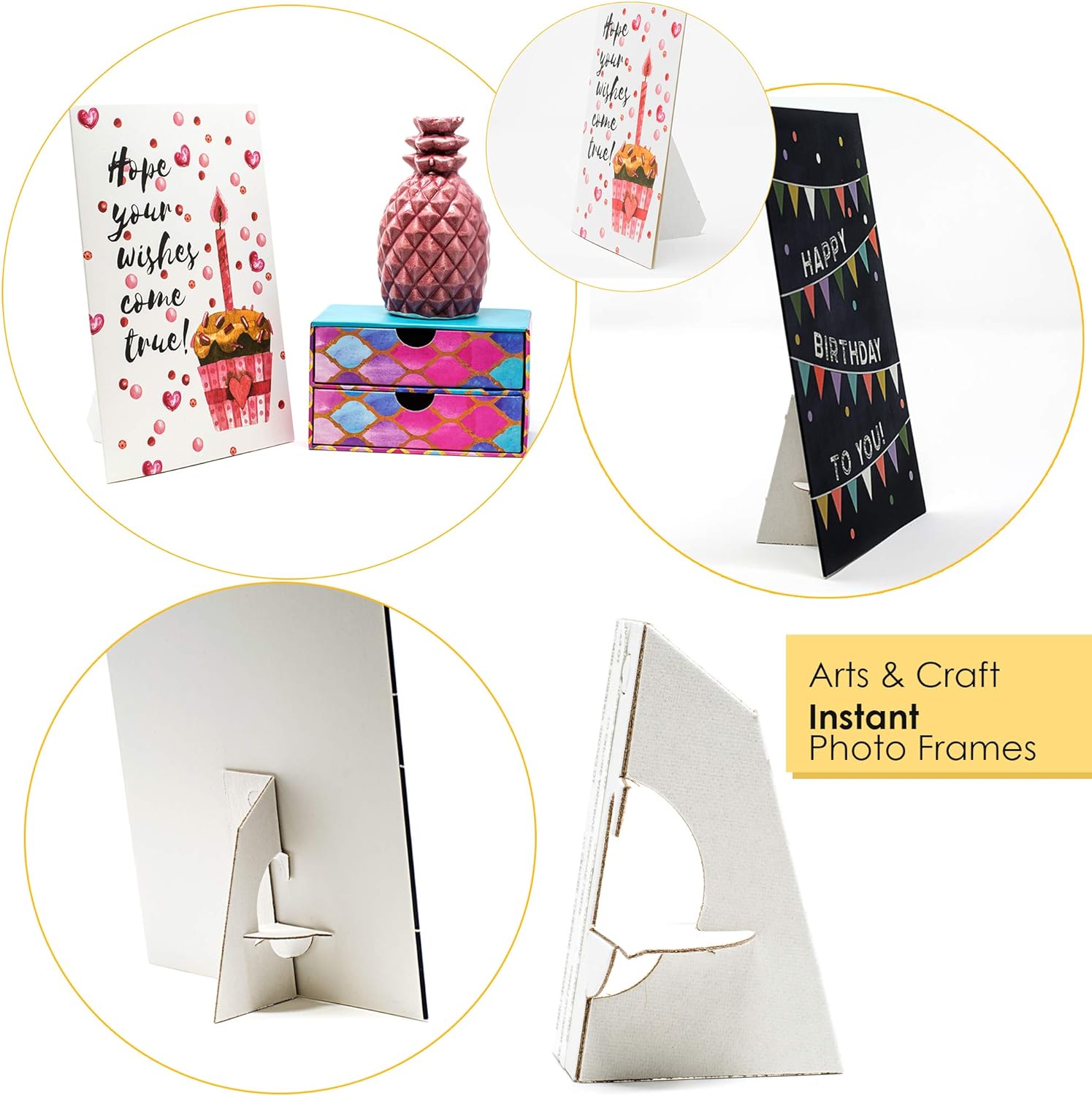 Archival Quality: Crafted from white cardboard with strong adhesive backing. These easel backs lock securely when open and fold flat for compact storage when closed.