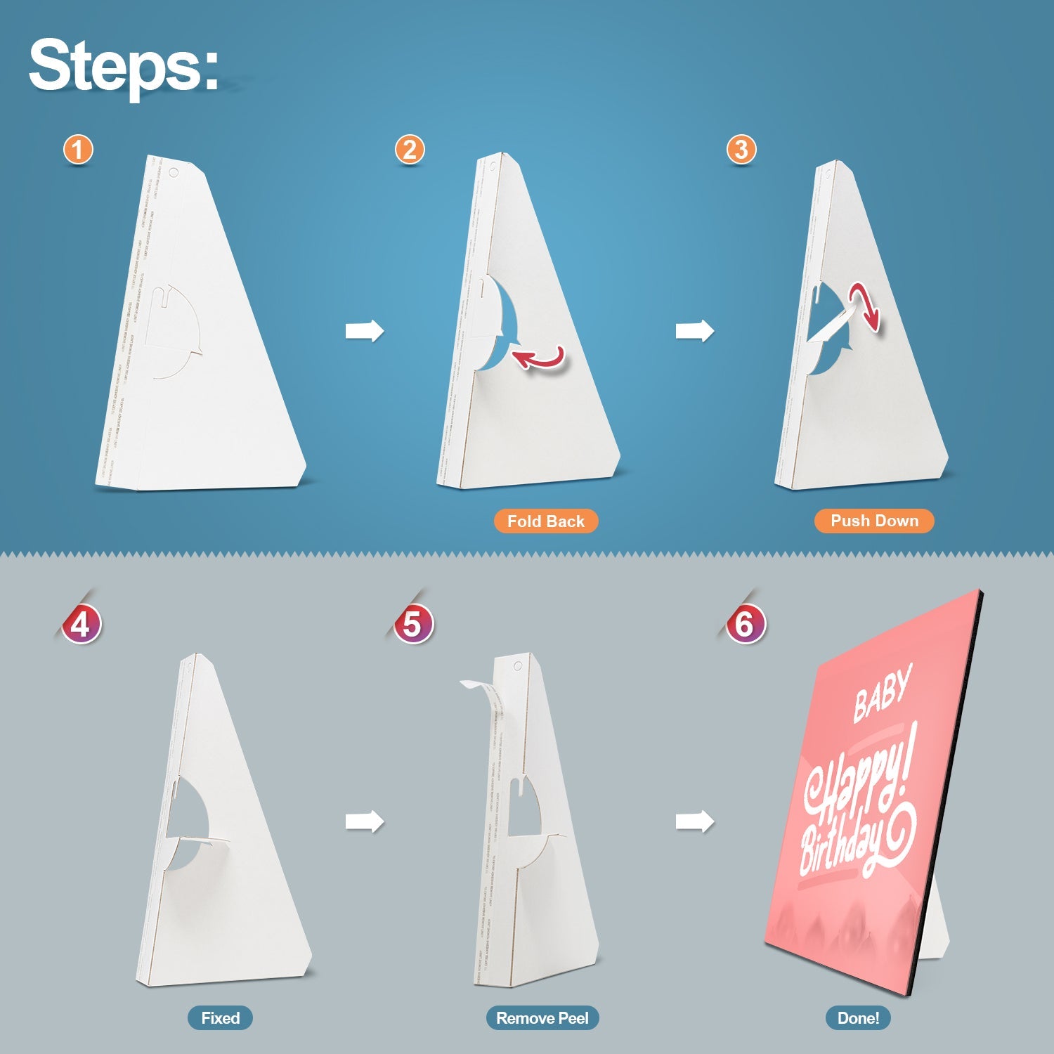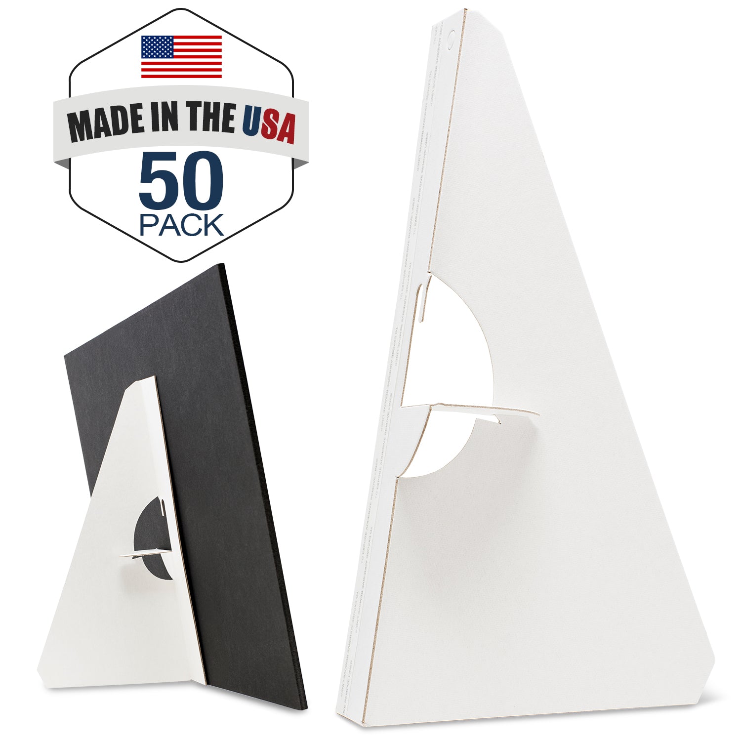 Archival Quality: Crafted from white cardboard with strong adhesive backing. These easel backs lock securely when open and fold flat for compact storage when closed.