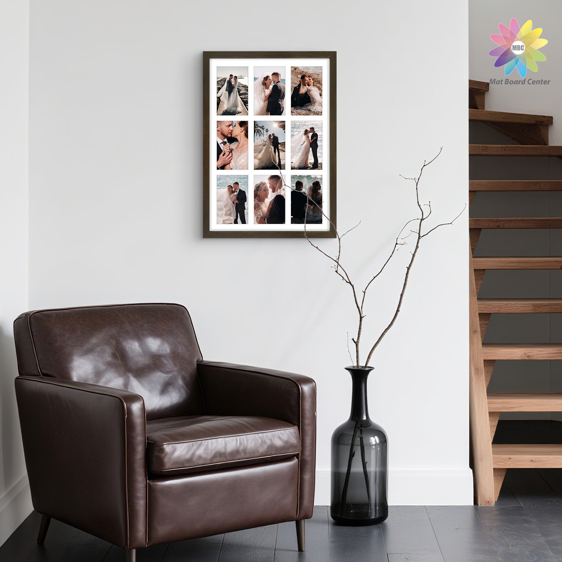 Clearance 13.6x19.7 Collage Photo Frame For Nine 4x6 Pictures With White Mat and Real Glass (8 Pcs Per Box) Brown