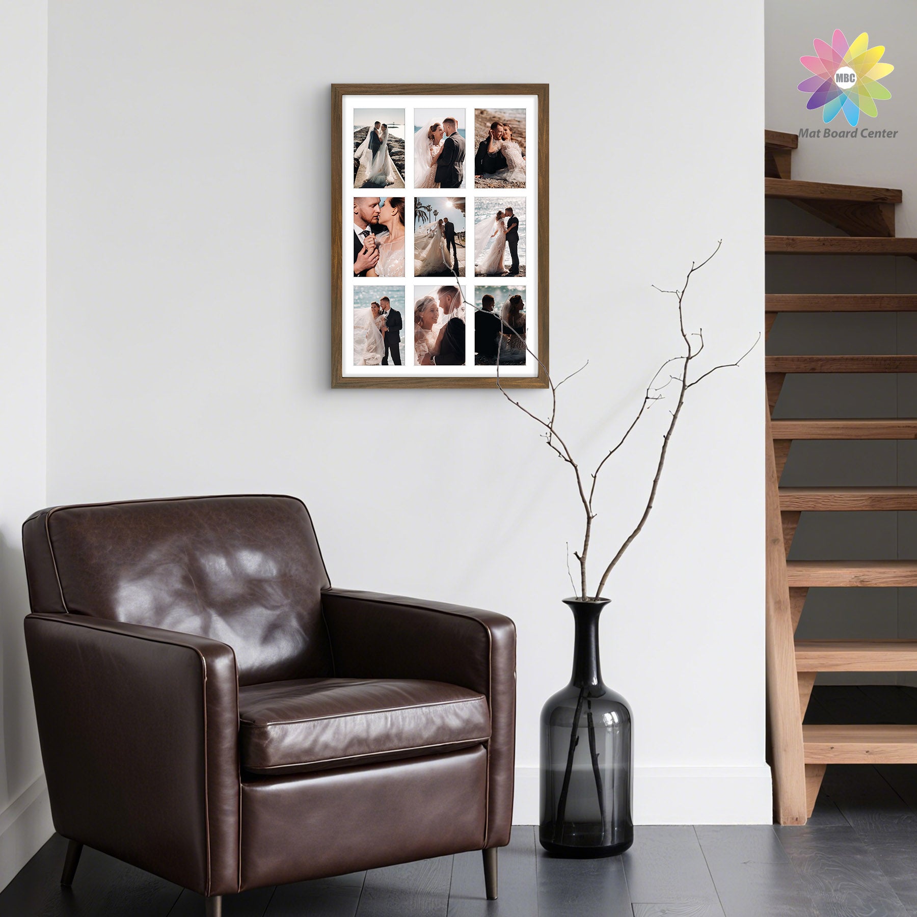 Clearance 13.6x19.7 Collage Photo Frame For Nine 4x6 Pictures With White Mat and Real Glass (8 Pcs Per Box) Rustic Brown