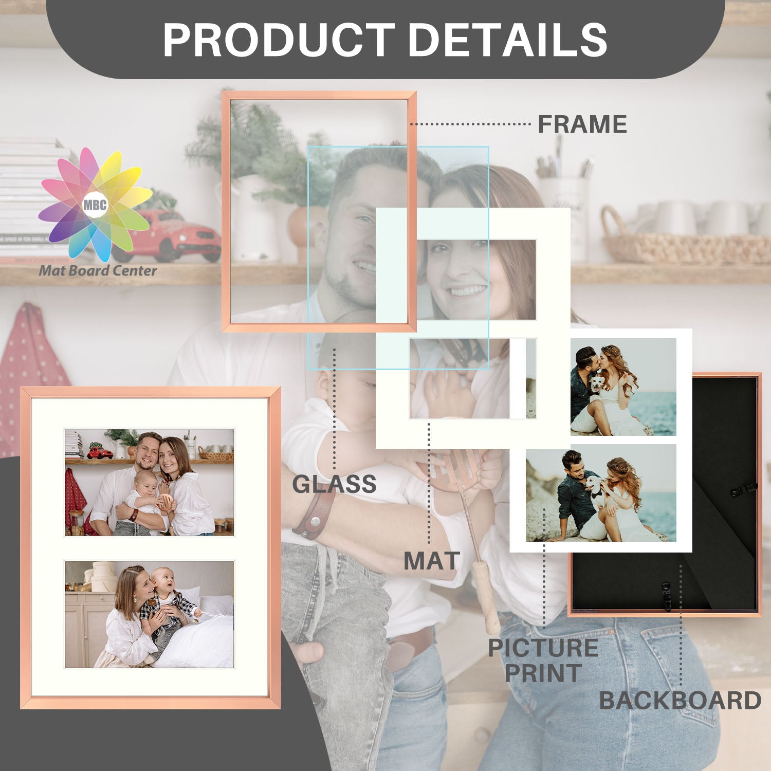 8x10 Aluminum Collage Picture Frame for Two 4x6 photos (12 Pcs per Box) Rose Gold
