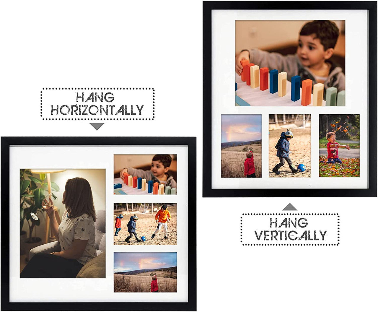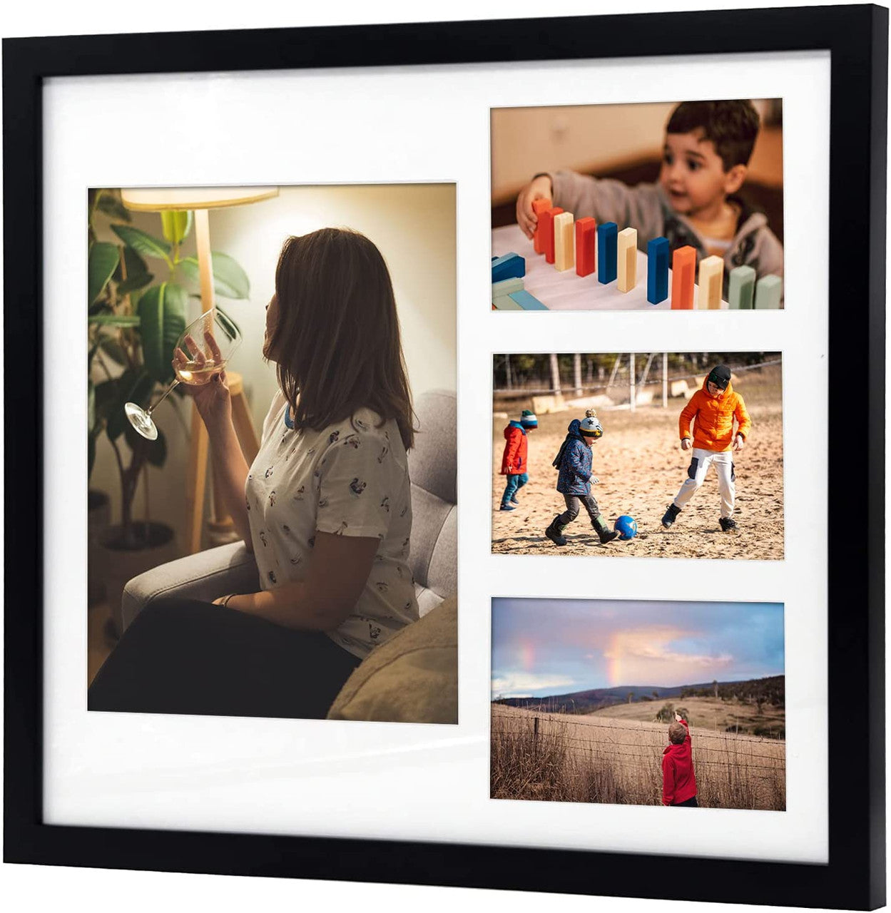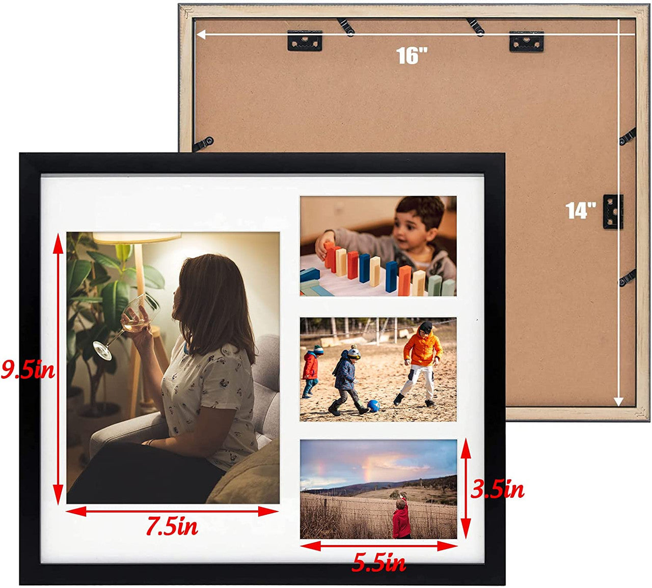 14X16 Collage Picture Frames, Wood Frames with White Mat For One 8X10 And Three 4X6 Photos, Black (8 Pcs per Box)