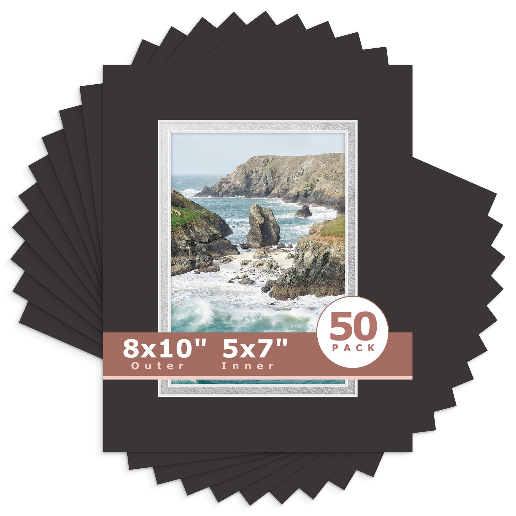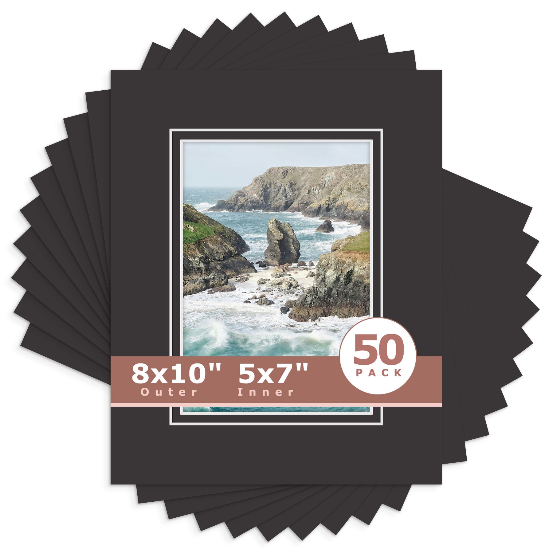 8x10 Double Mat For 5x7 Photos - Pack of 50 Black Black