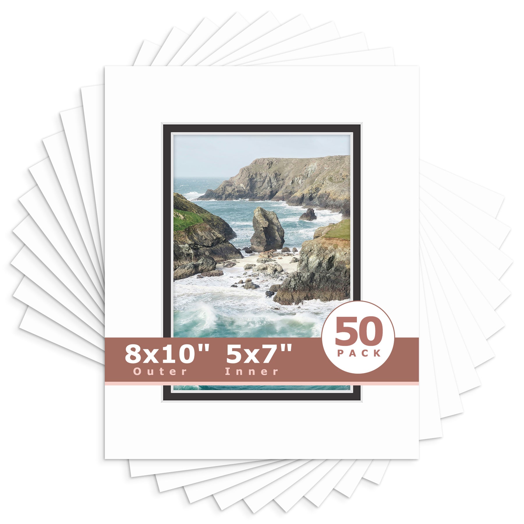 8x10 Double Mat For 5x7 Photos - Pack of 50 Black White