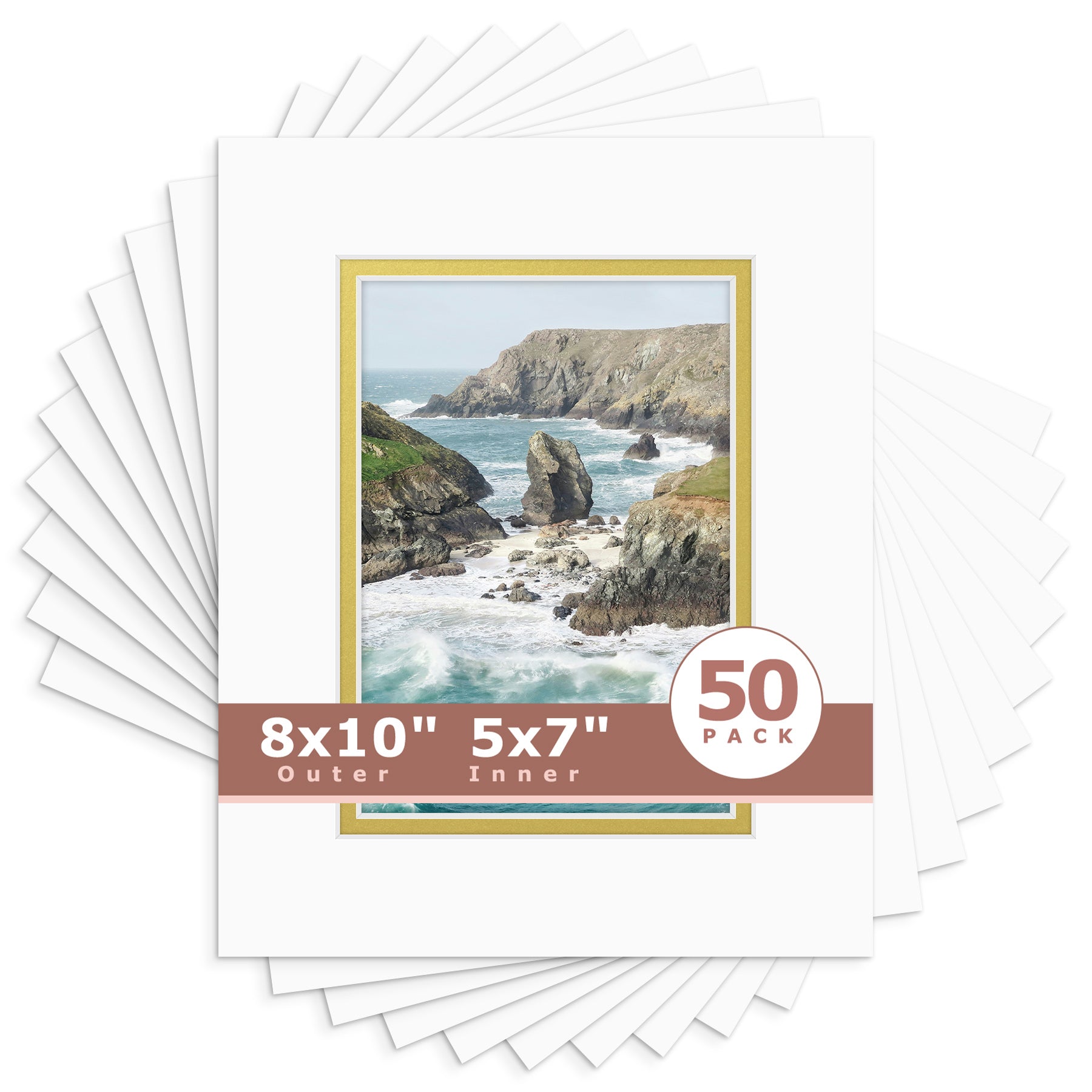 8x10 Double Mat For 5x7 Photos - Pack of 50 Off White Gold