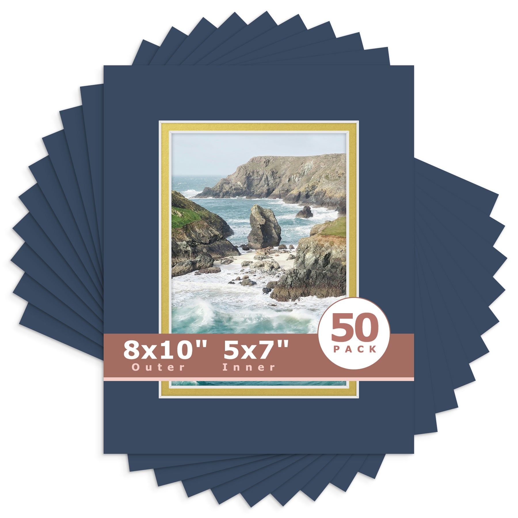 8x10 Double Mat For 5x7 Photos - Pack of 50 Dignity Blue Old Gold