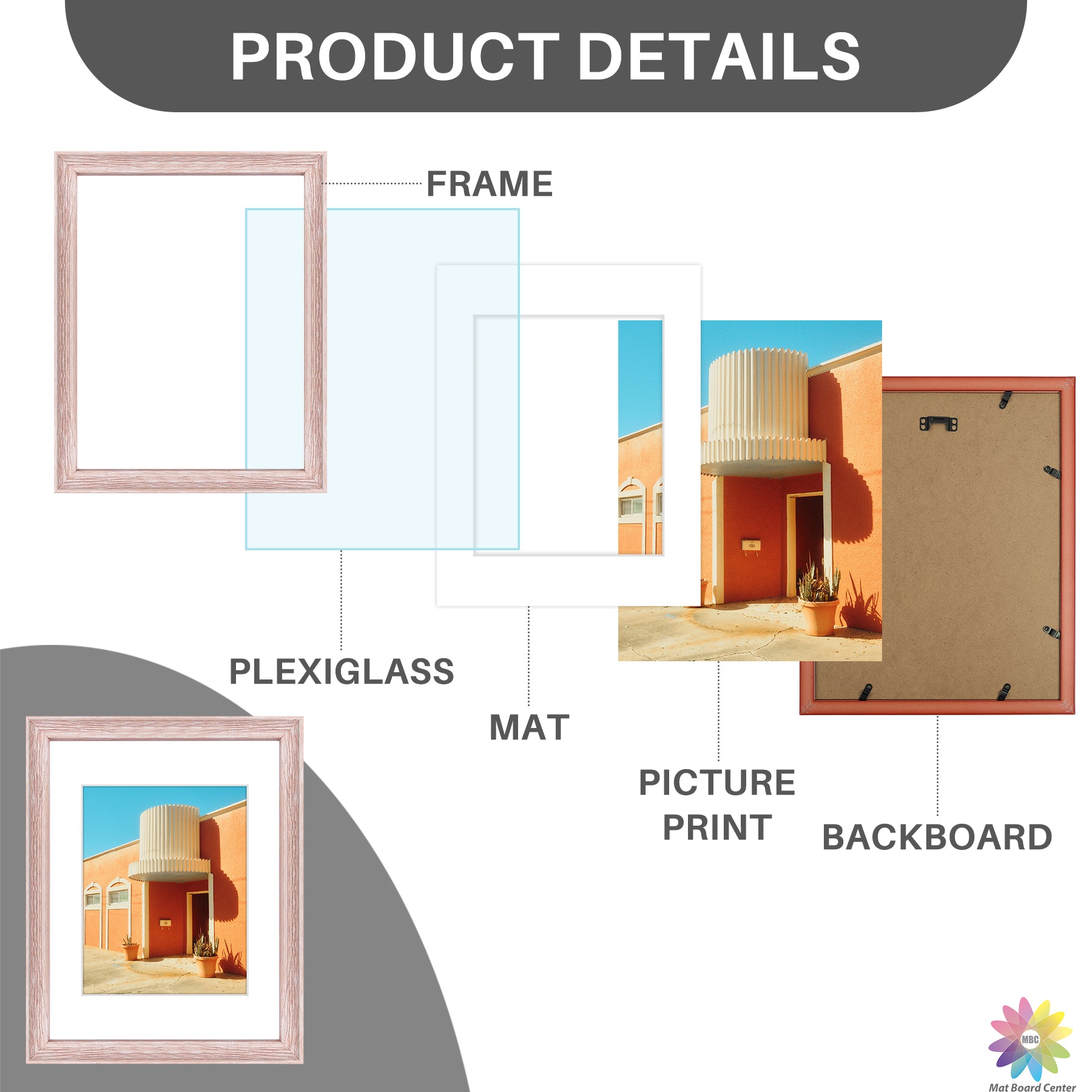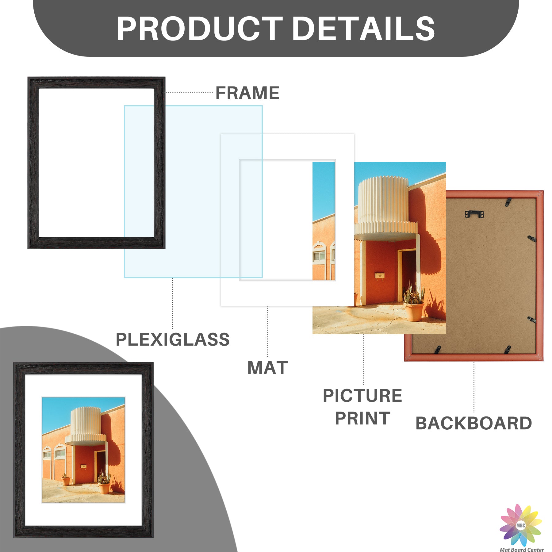 11x14 Picture Frame for 8x10 Photo with White Mat and Plexiglass (6 Pcs Per Box)