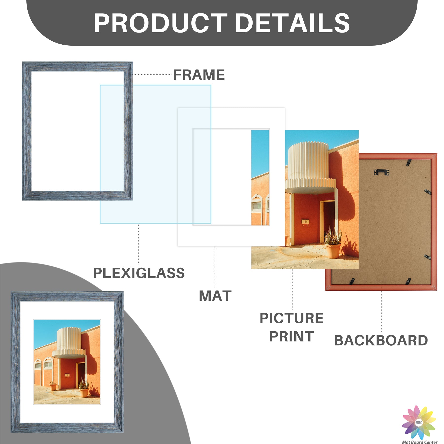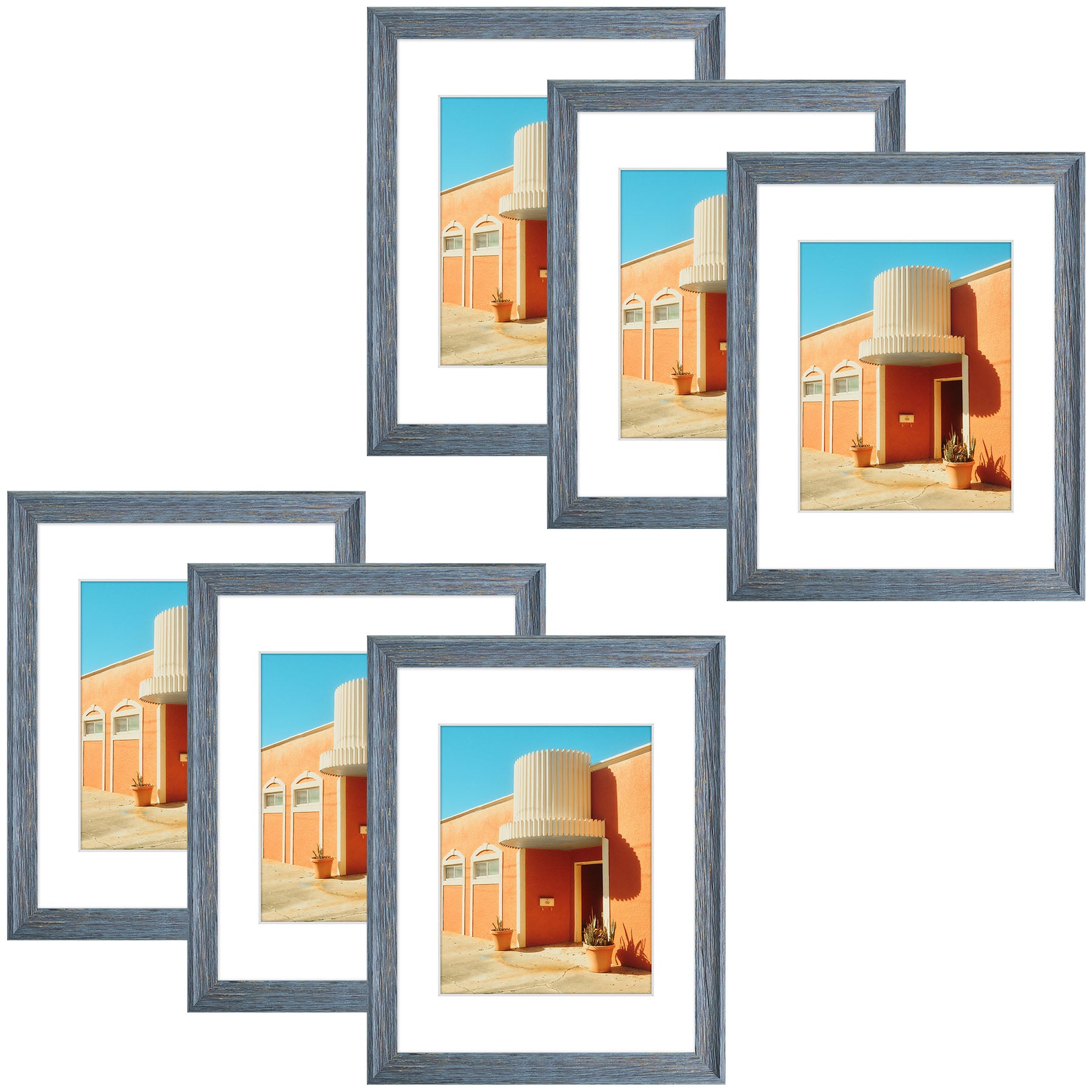 11x14 Picture Frame for 8x10 Photo with White Mat and Plexiglass (6 Pcs Per Box) Blue
