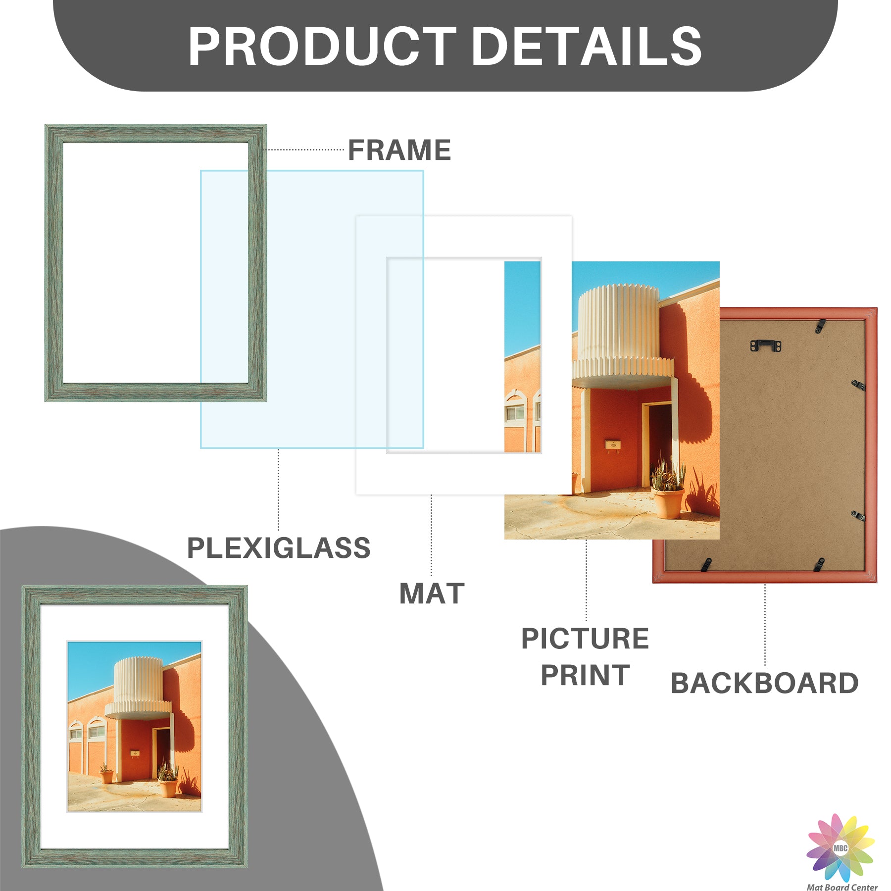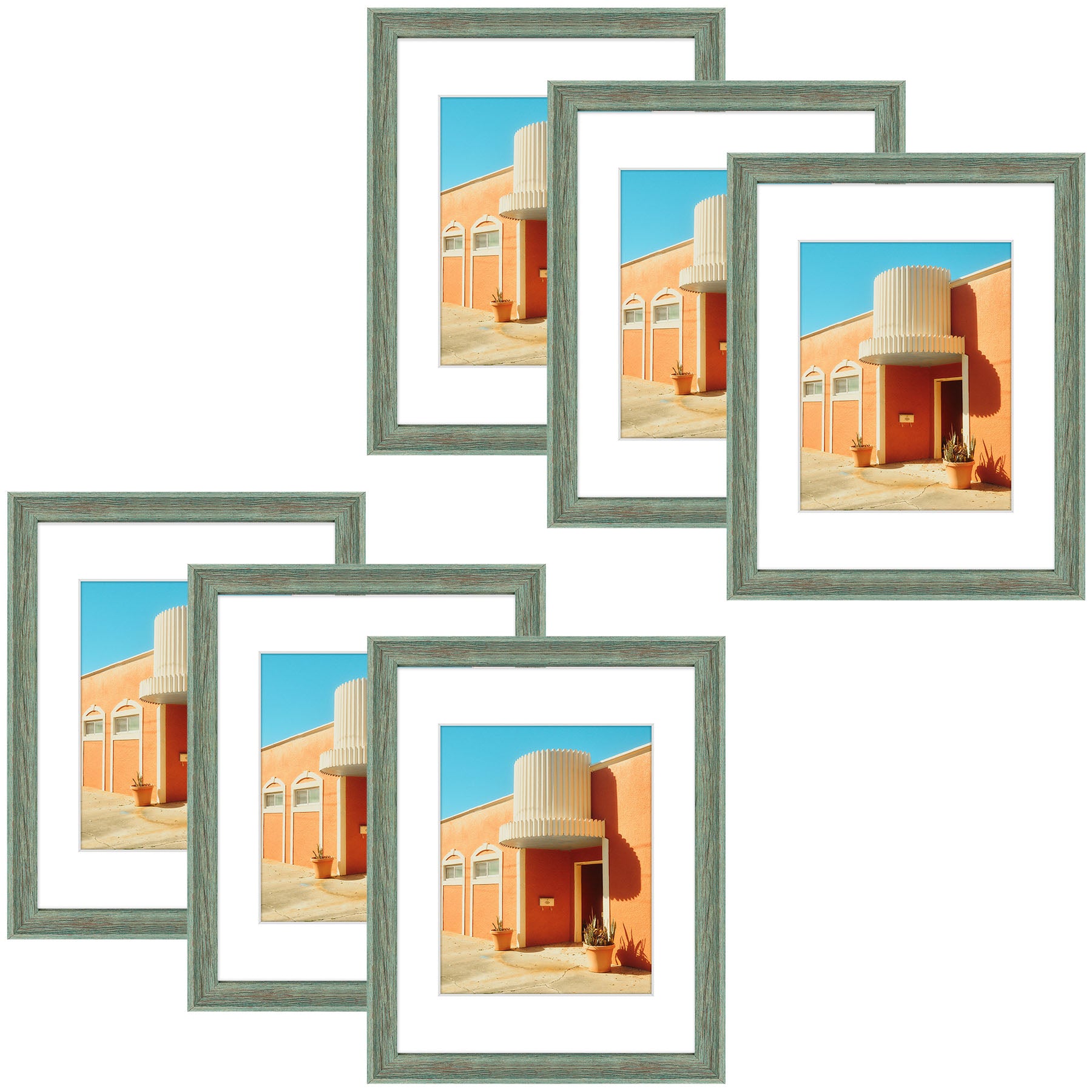 11x14 Picture Frame for 8x10 Photo with White Mat and Plexiglass (6 Pcs Per Box) Green