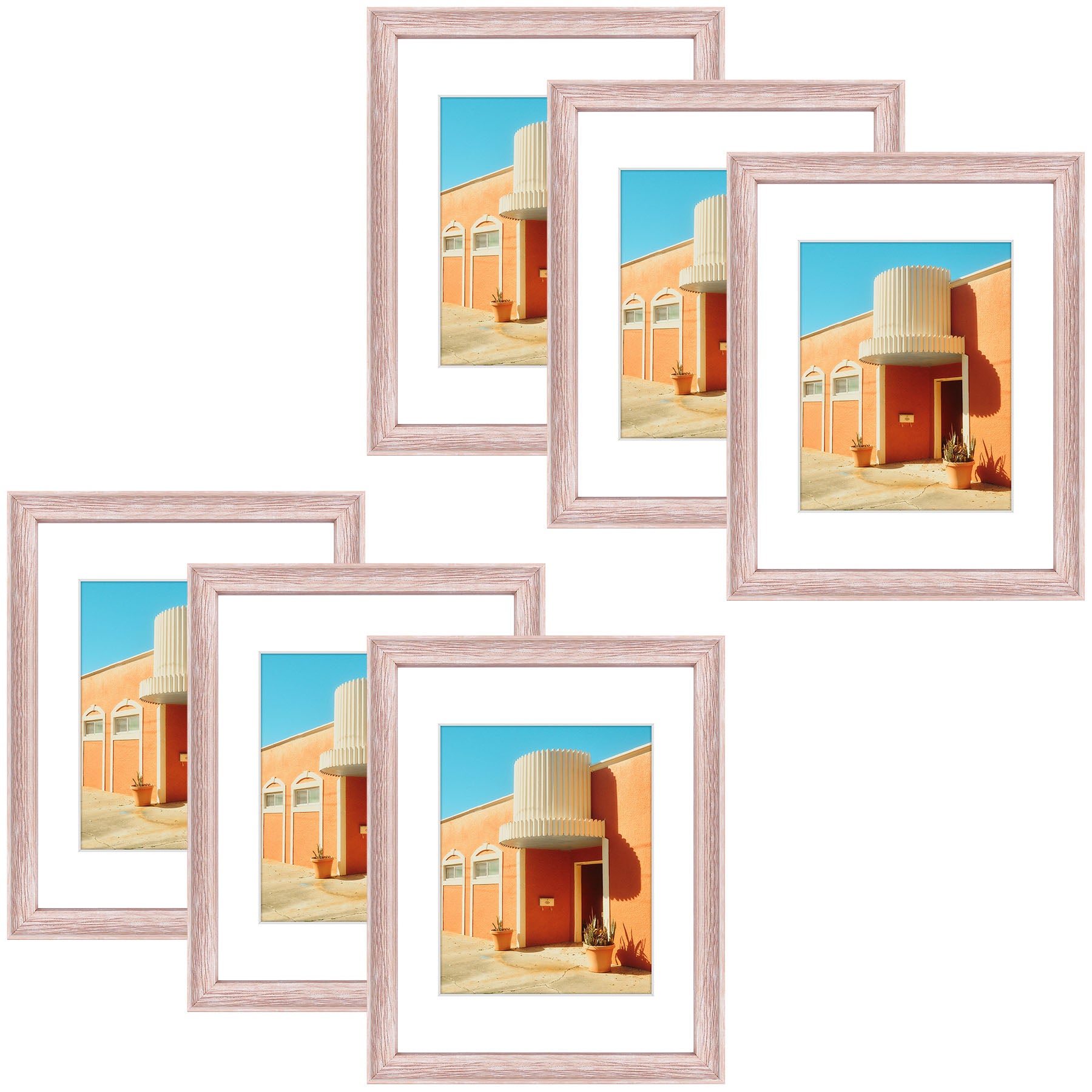 11x14 Picture Frame for 8x10 Photo with White Mat and Plexiglass (6 Pcs Per Box) Pink