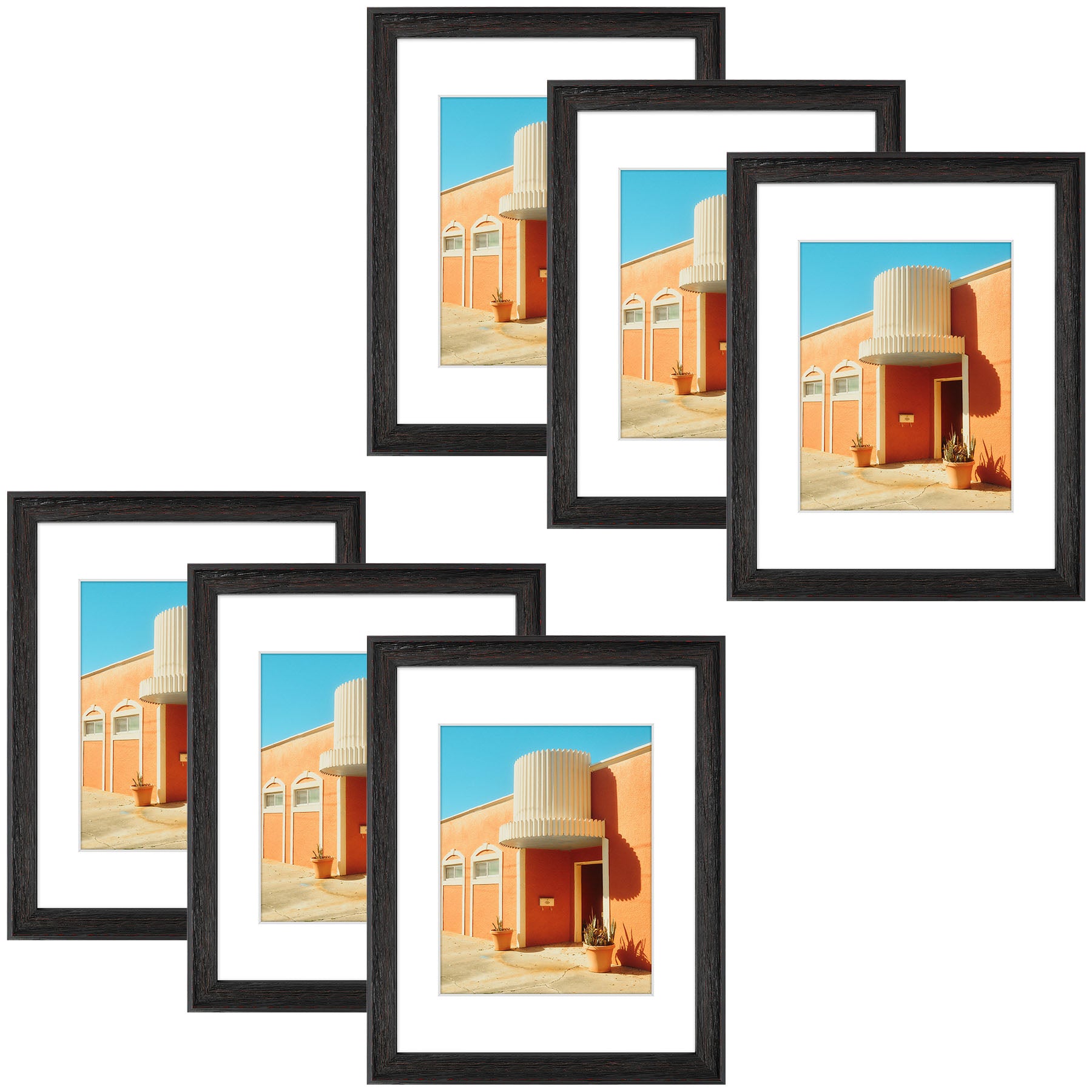 11x14 Picture Frame for 8x10 Photo with White Mat and Plexiglass (6 Pcs Per Box) Black