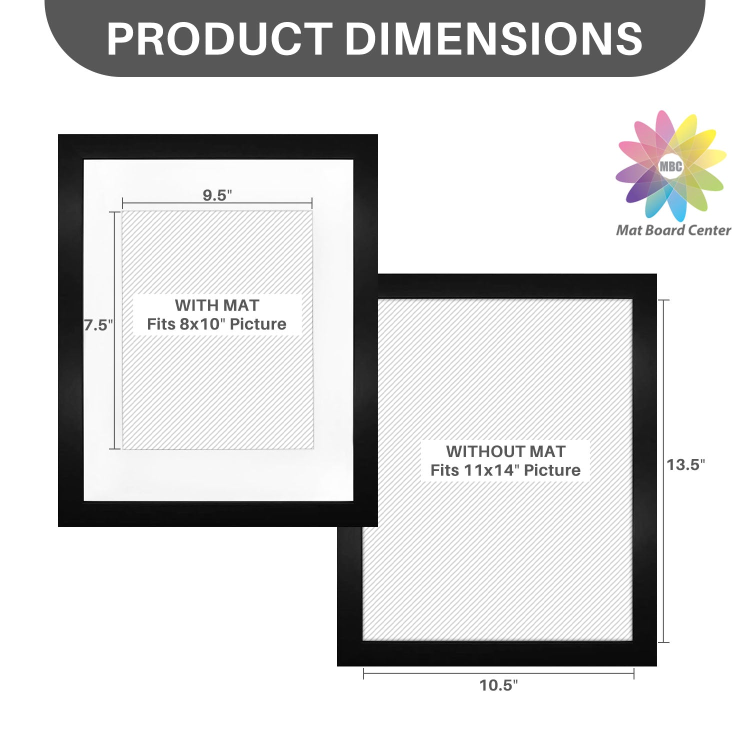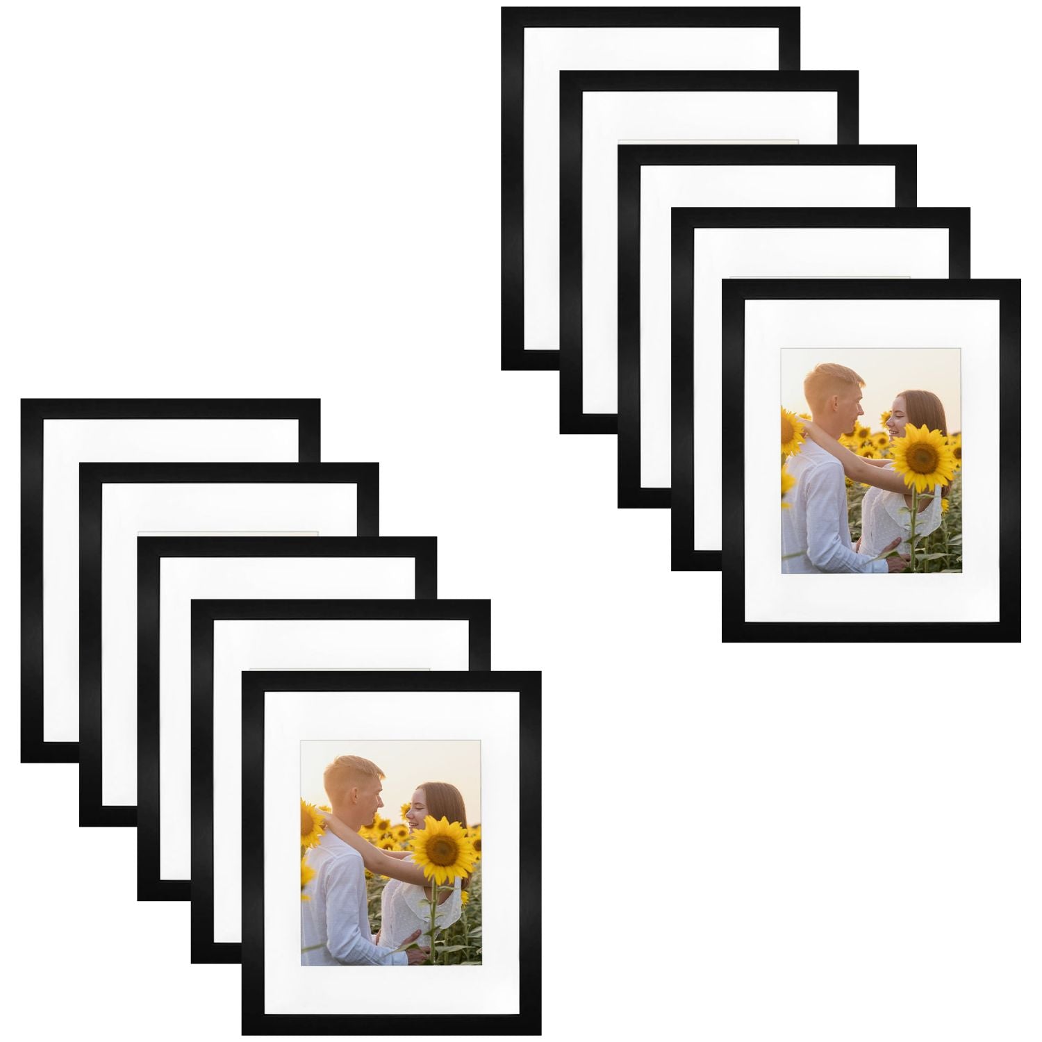 Pack of 10, 11x14 Wood Frame with Mat for 8x10 picture Black