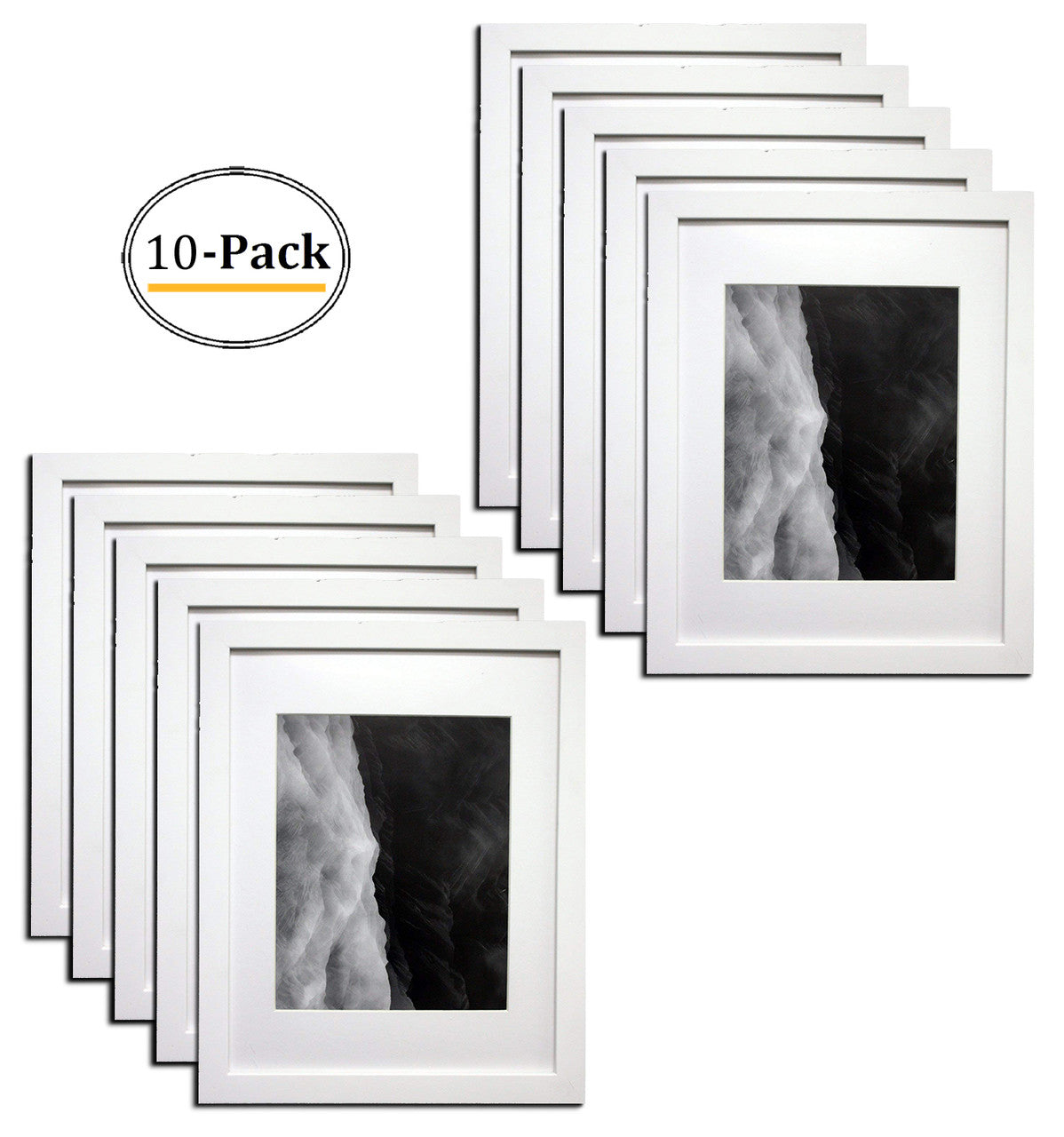 Pack of 10, 11x14 Wood Frame with Mat for 8x10 picture White