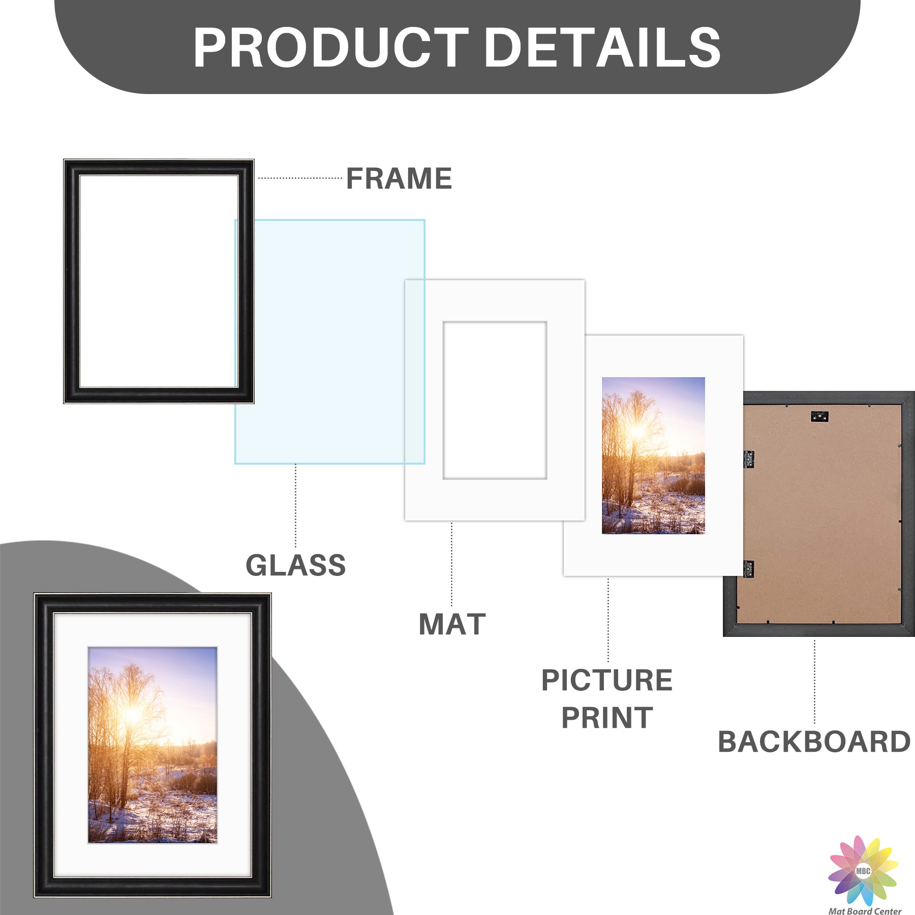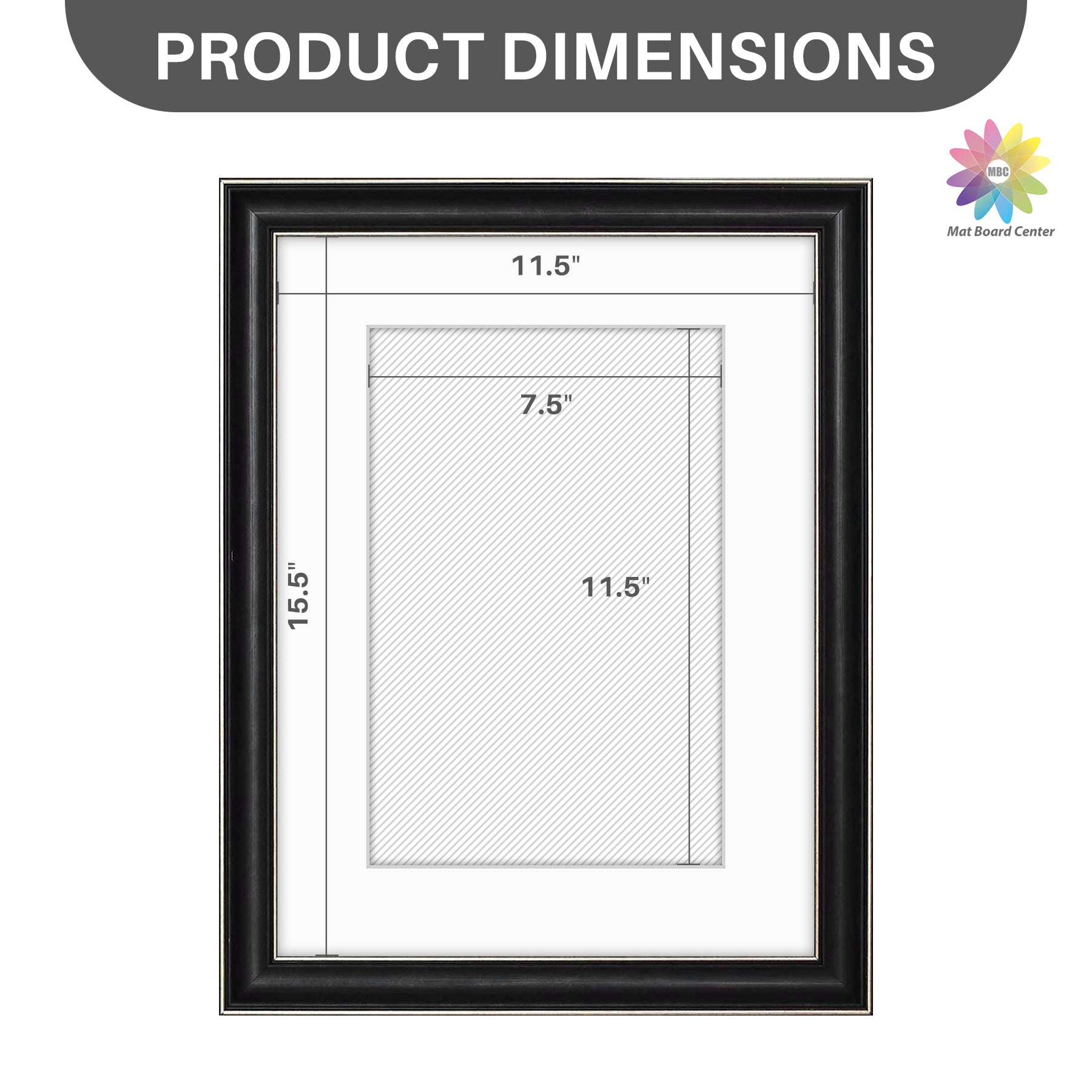 12x16 Picture Frame for 8x12 Photo with White Mat Silver Trim Black-Dark Brown Inner Panel (10 Pcs per Box)
