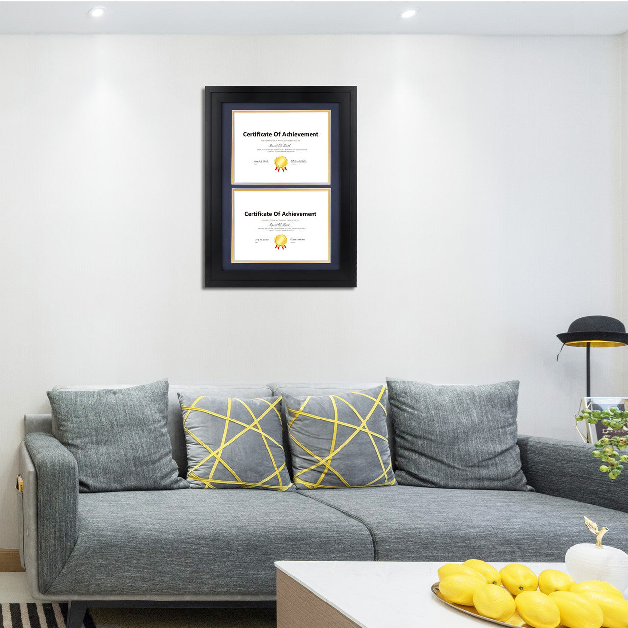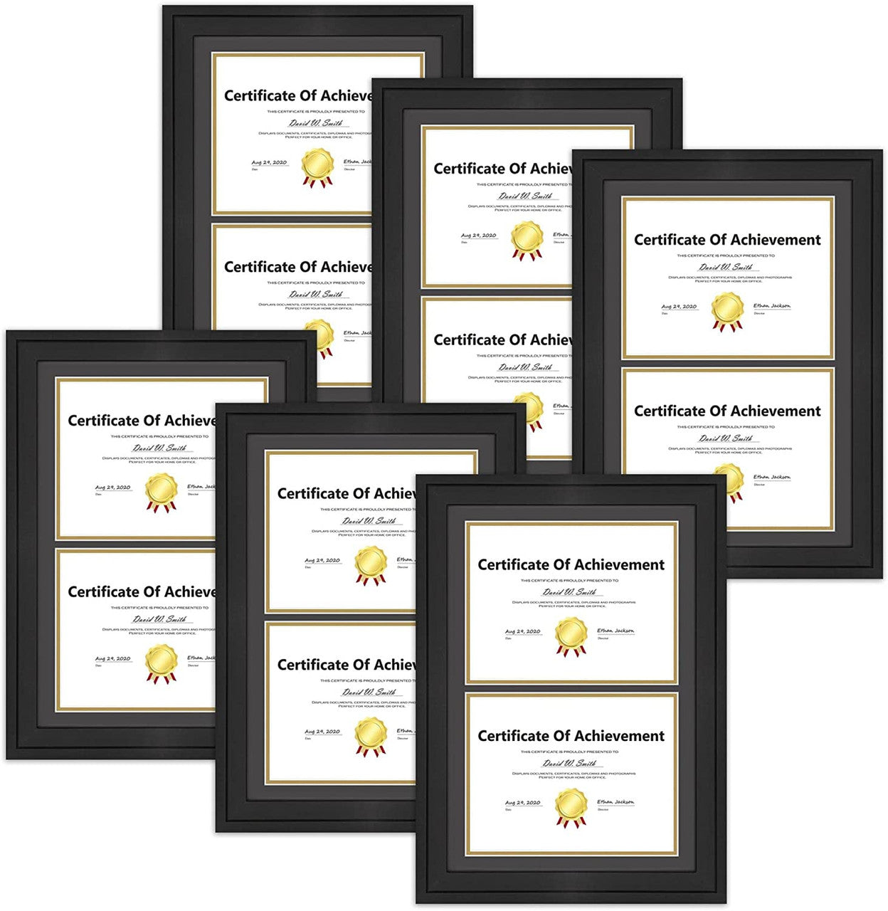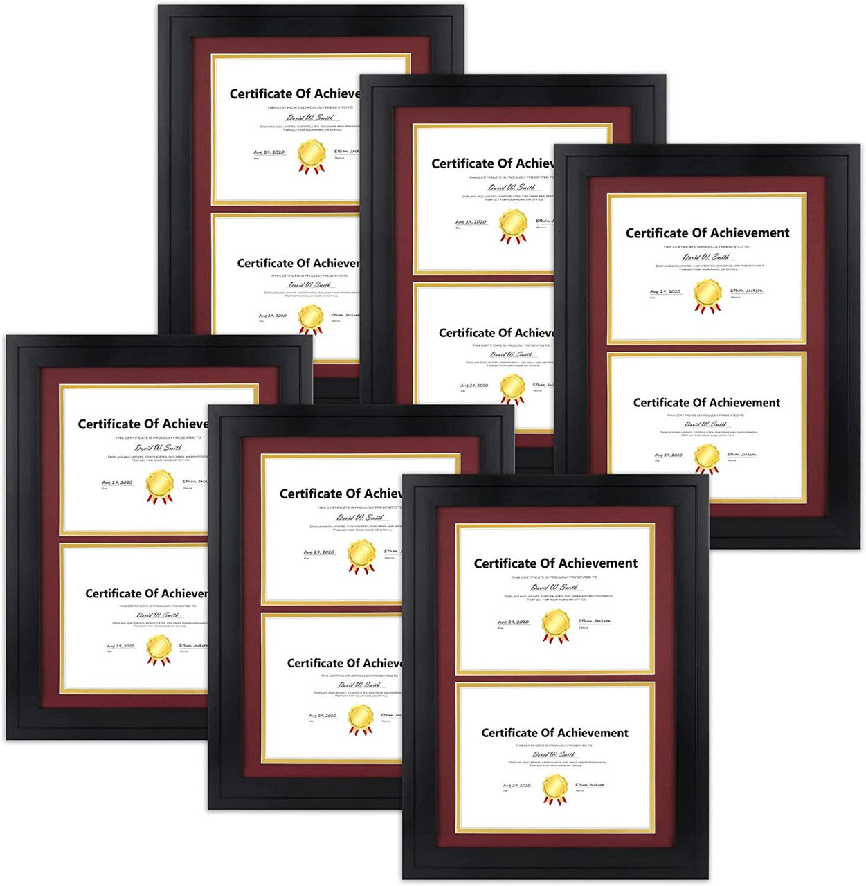Celebrate your achievements with this set of six 14x20 double diploma frames. Each frame is designed to display two 8.5x11 documents, featuring double mats for a professional and distinguished look. Constructed from solid wood and protected with tempered glass, these frames offer durability and clarity. Ideal for showcasing diplomas, certificates, or awards, they add a touch of elegance to any office or study.
