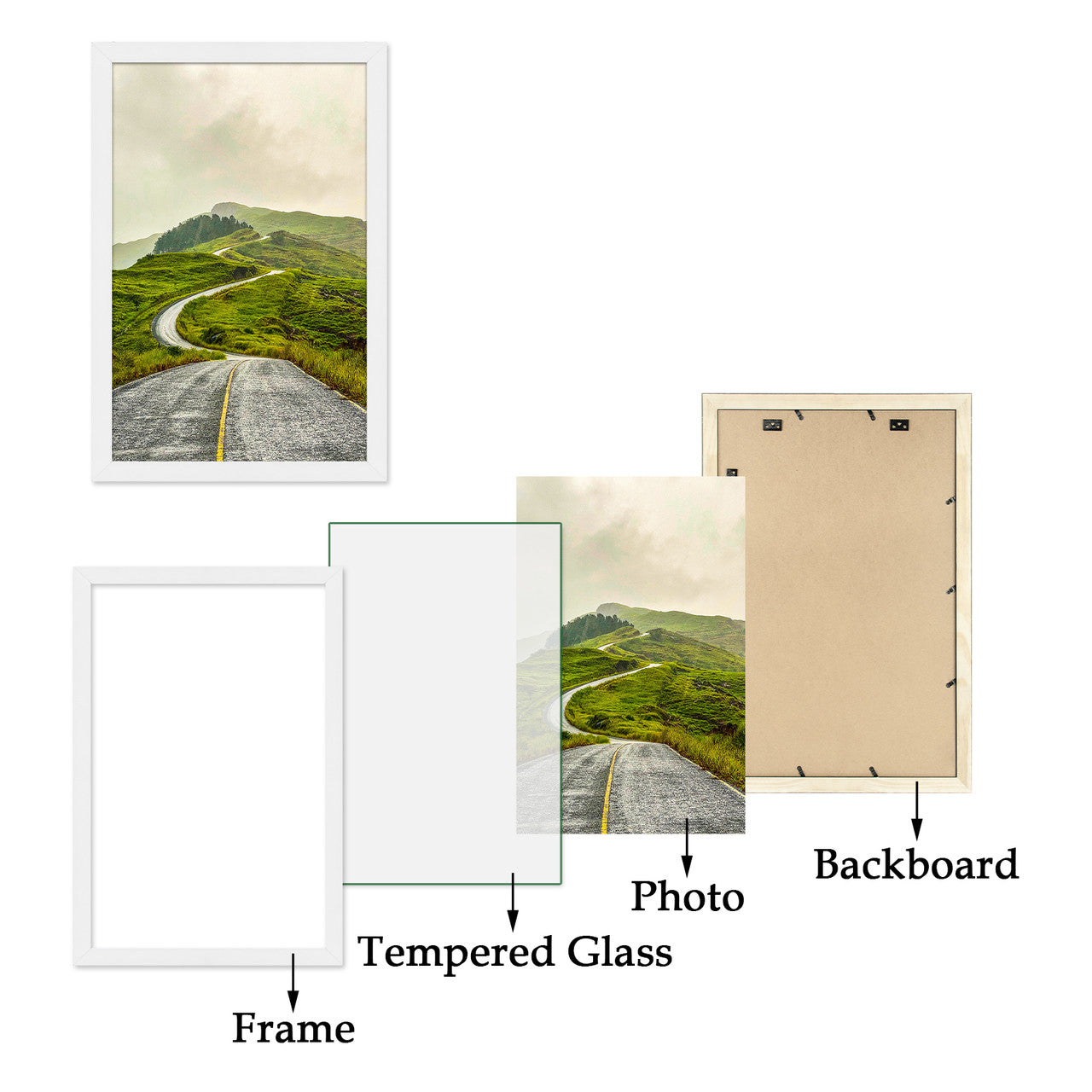 These Picture Frames are crafted from solid wood and feature tempered glass for enhanced durability and clarity. Designed for both horizontal and vertical wall display, this 4-pack is perfect for showcasing your favorite photos, artwork, or certificates in a stylish and versatile manner.