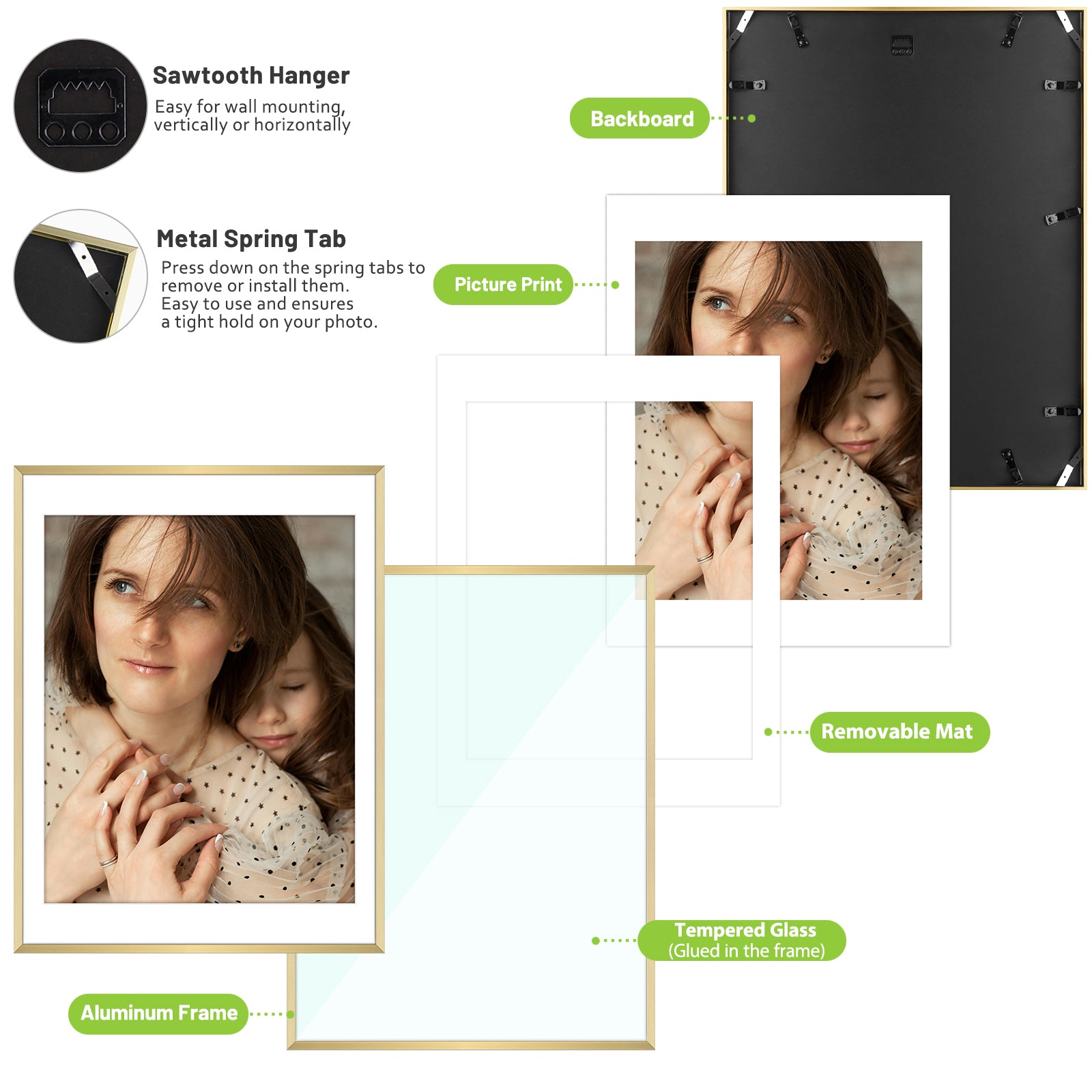 18x24 Metal Picture Frame for 16x20 Photo with White Mat and Real Glass (3 Pcs per Box) Gold