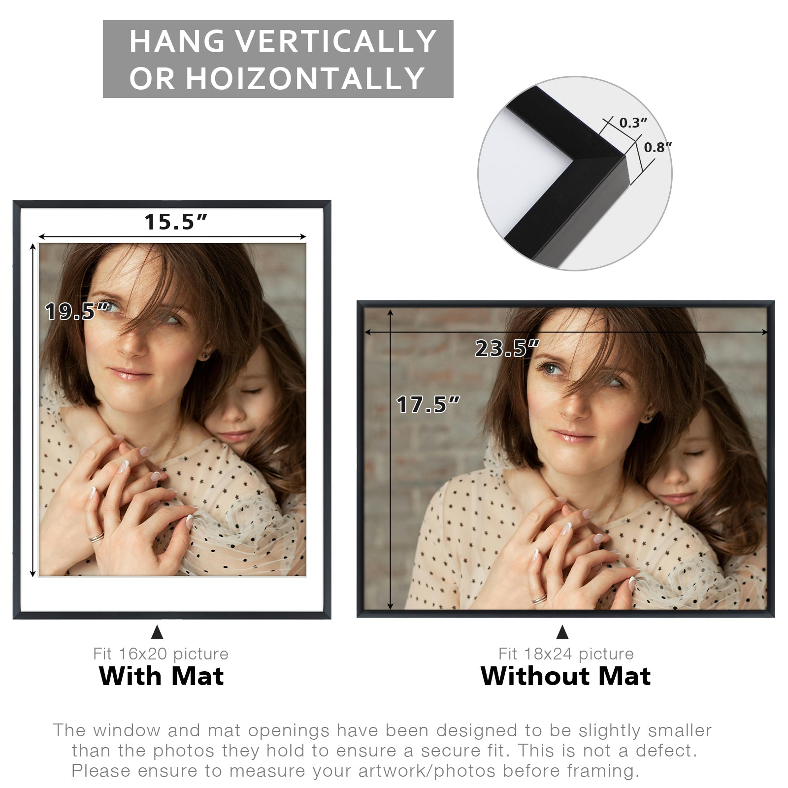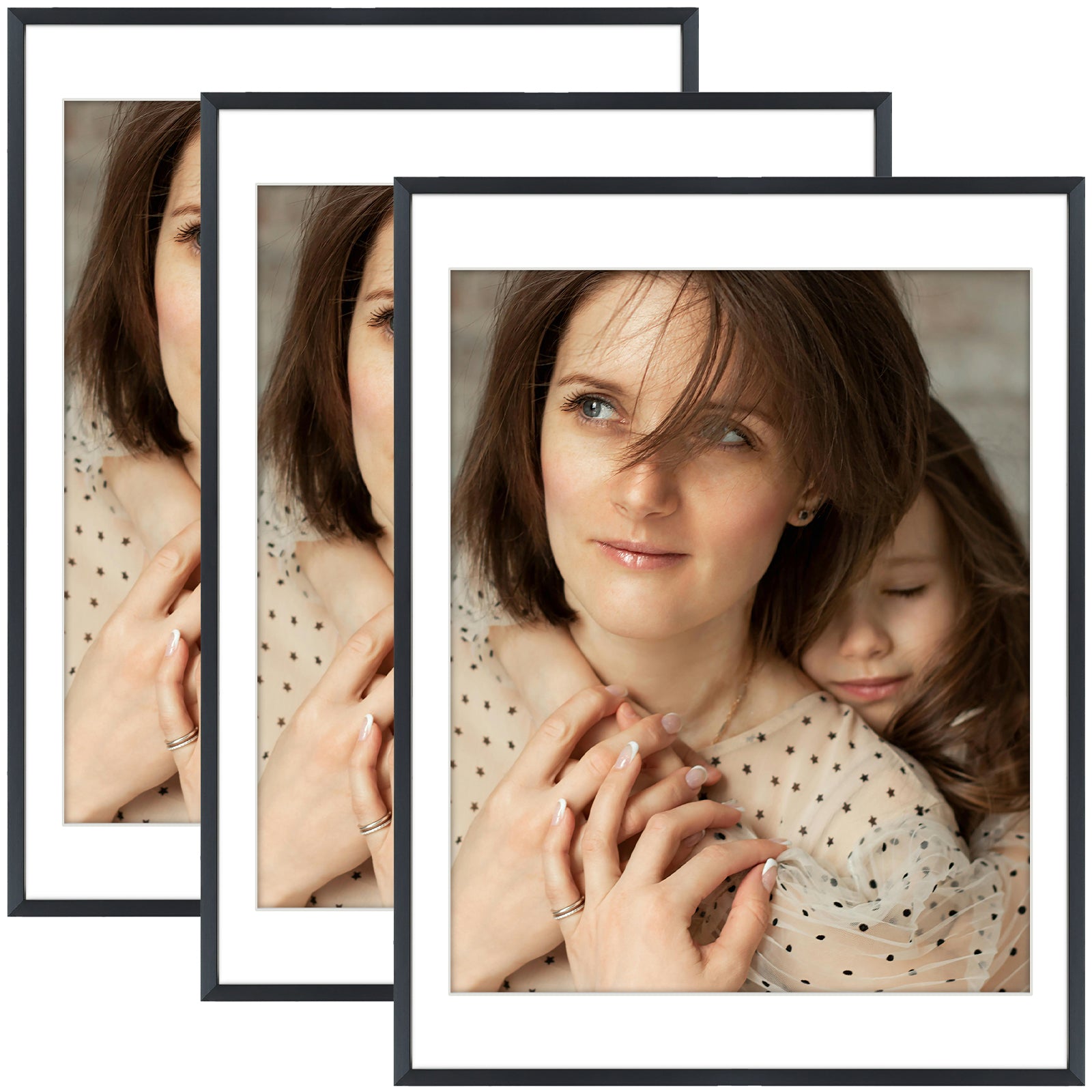 18x24 Metal Picture Frame for 16x20 Photo with White Mat and Real Glass (3 Pcs per Box) Black