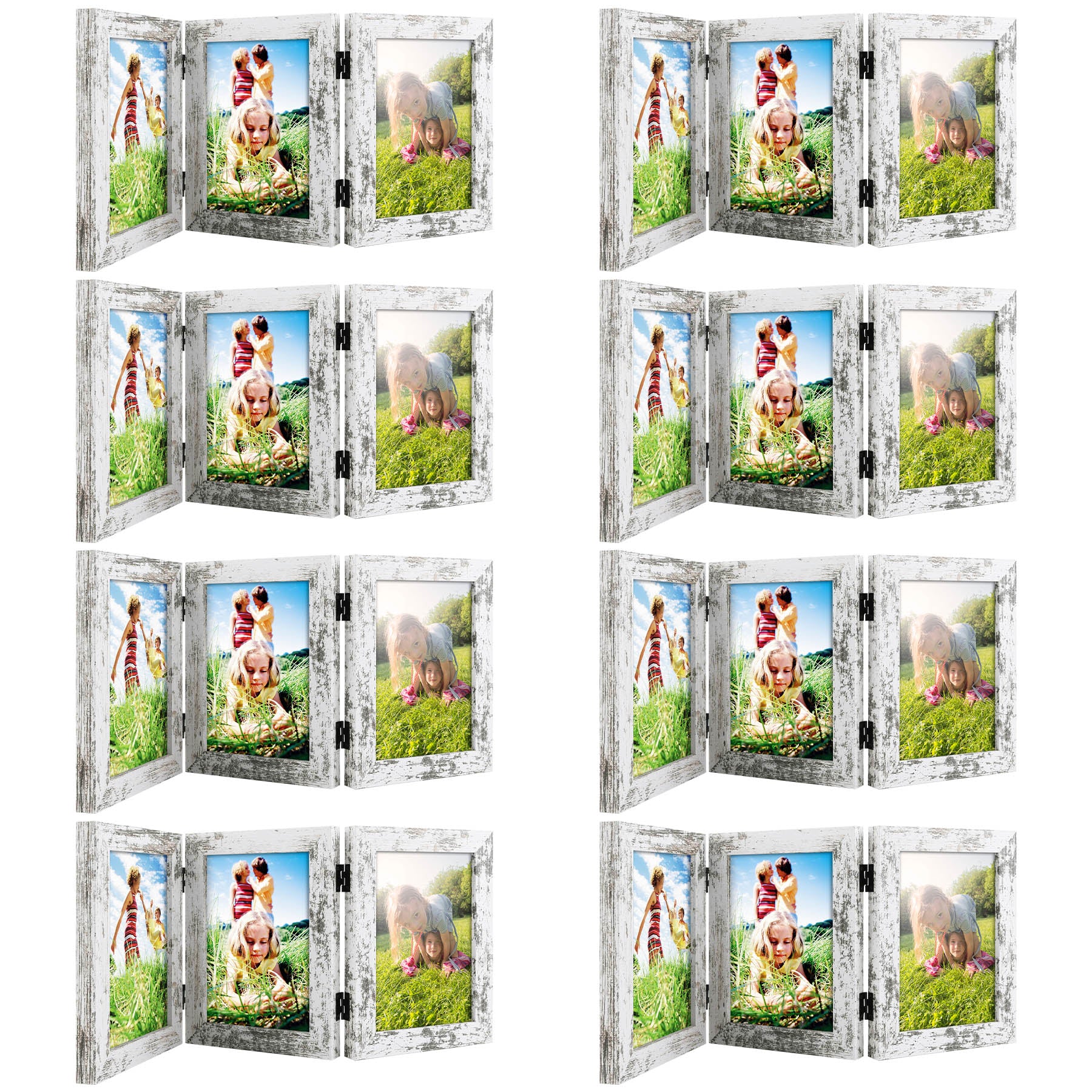 Three Picture Frame 5x7 Triple Frame (8 Pcs per Box) Distressed White