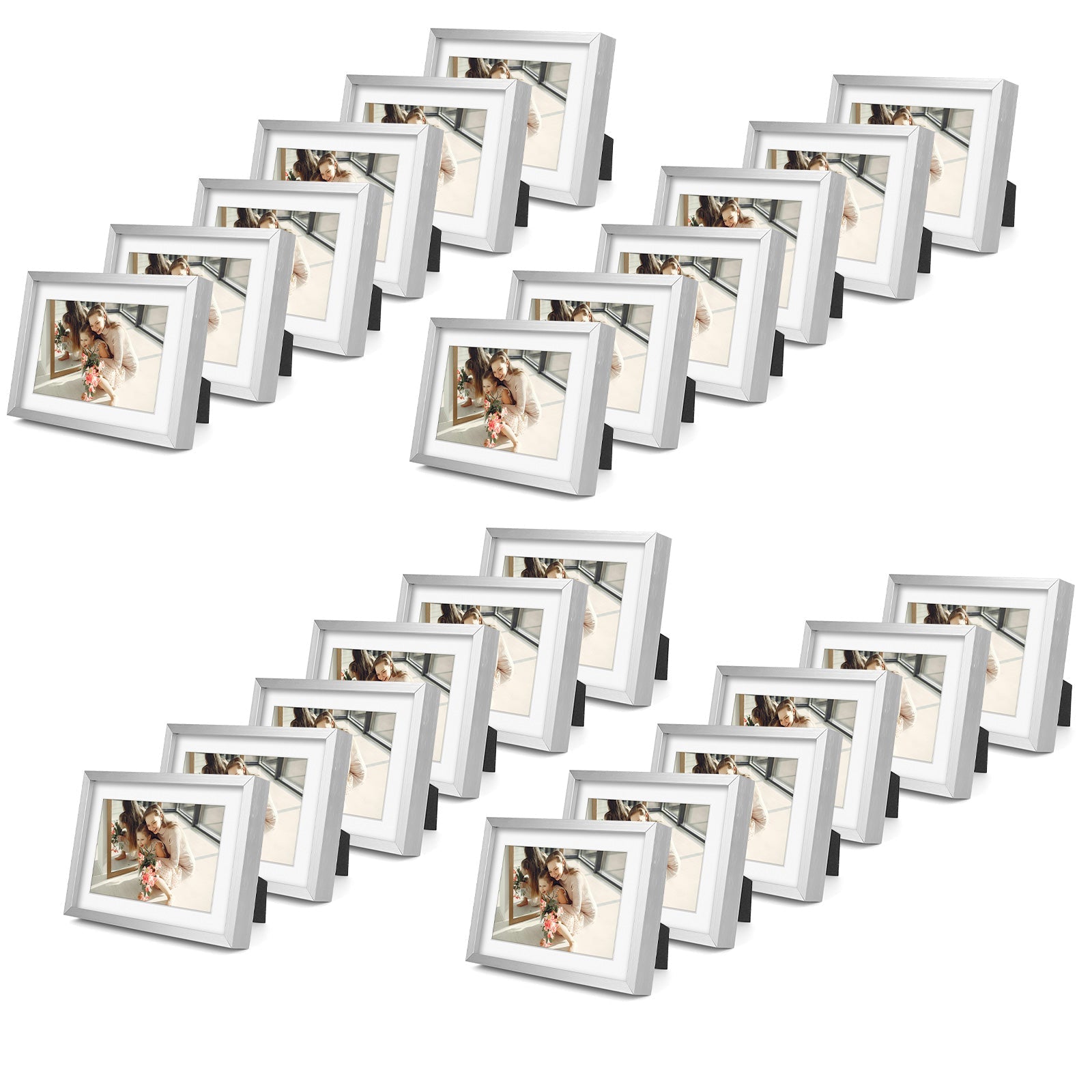 5x7 Metal Frame for 4x6 Photo with White Mat (24 Pcs Per Box) Silver