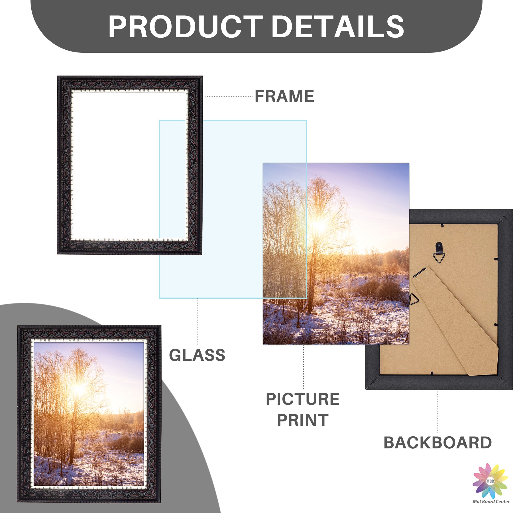 8.5x11 Ornate Picture Frame Black with Silver and Burgundy (10 Pcs per Box)