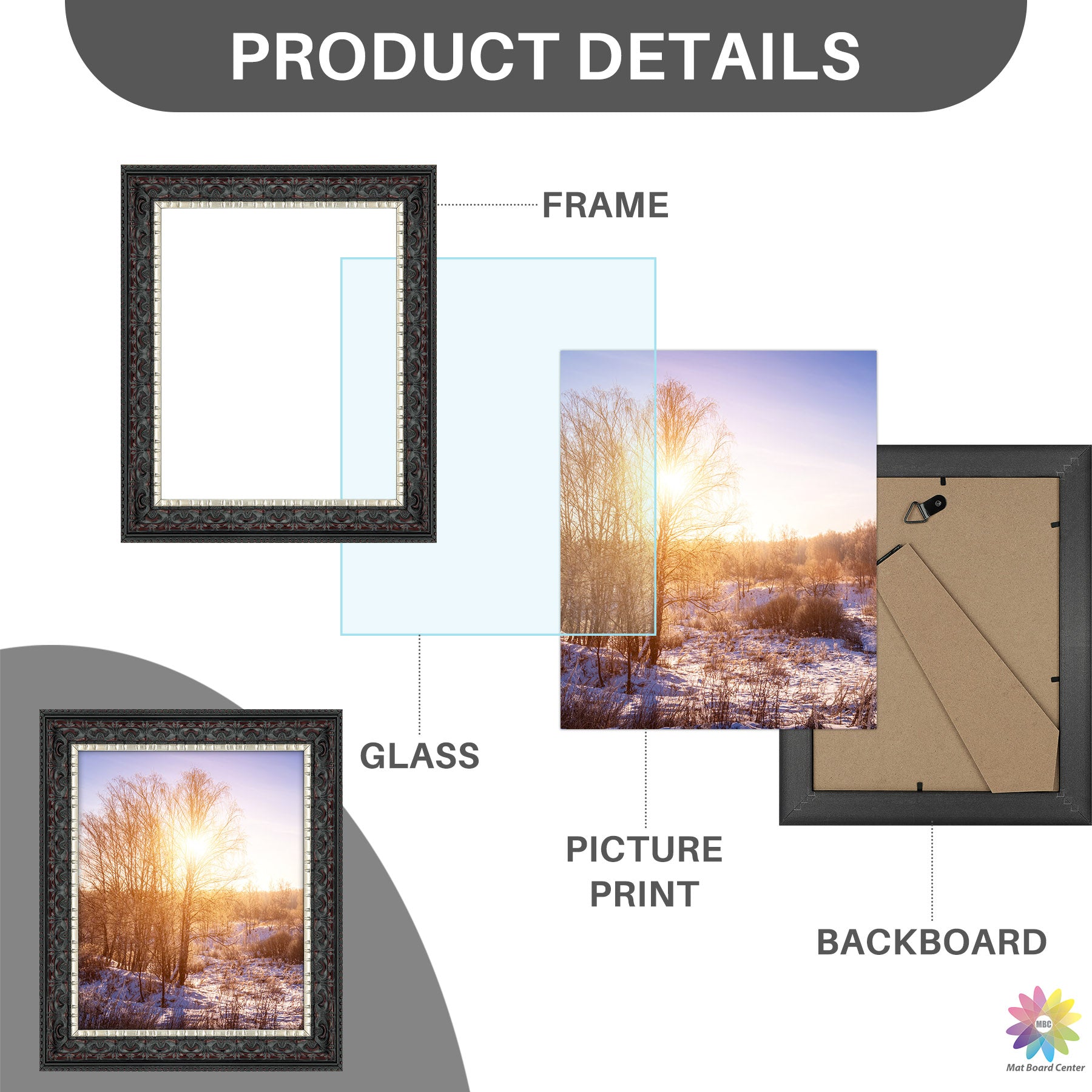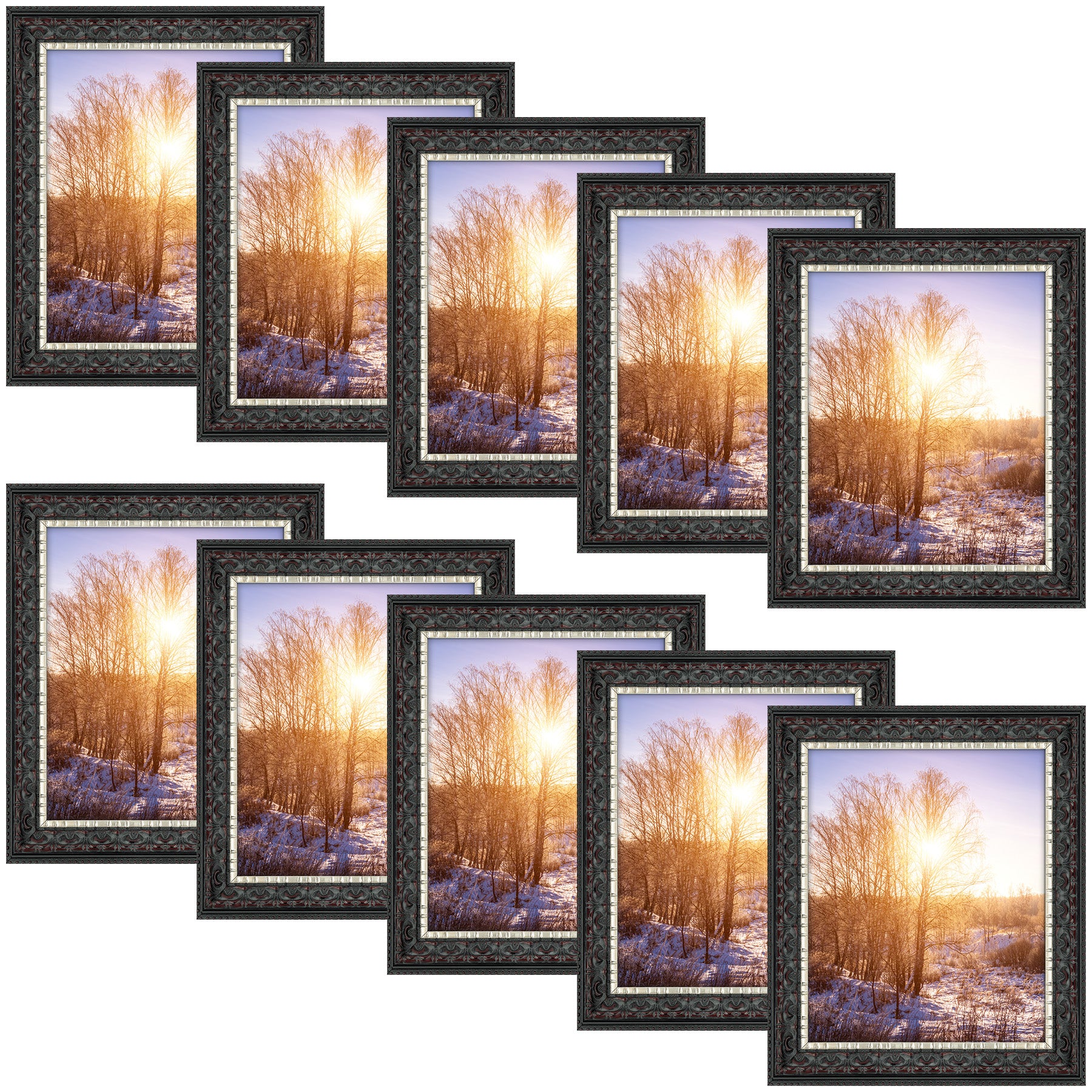 8x10 Ornate Picture Frame Black With Silver & Burgundy (10 Pcs per Box)