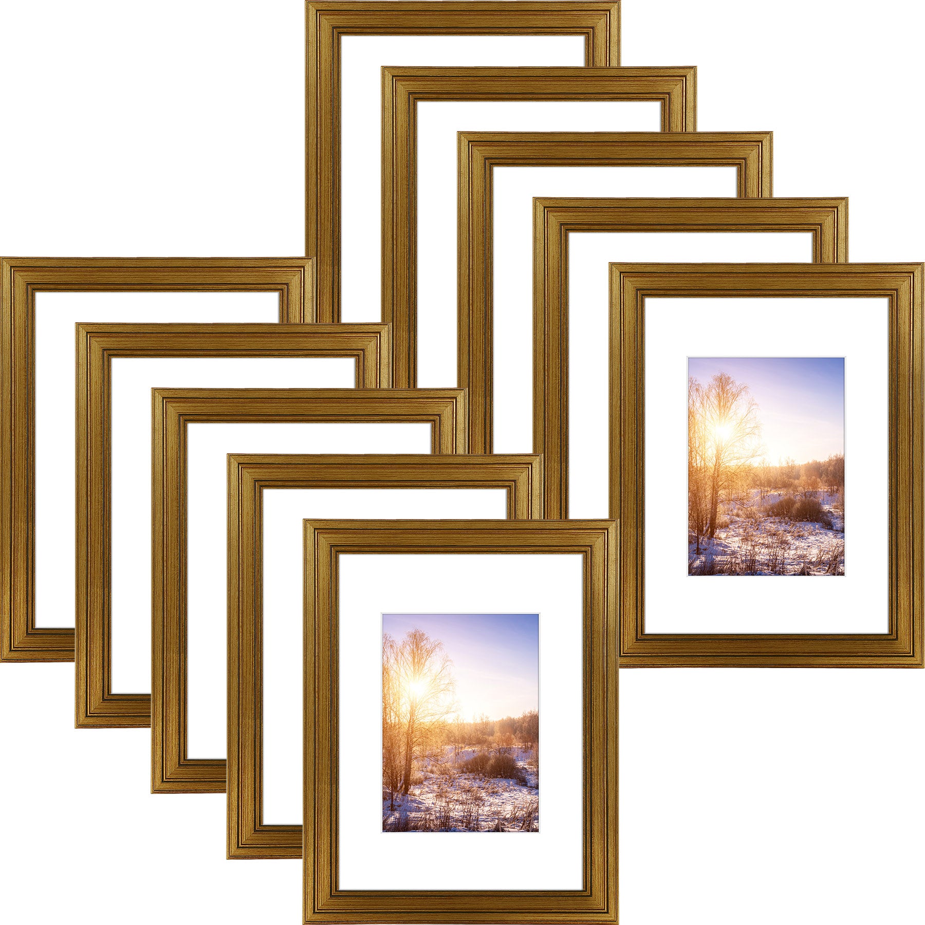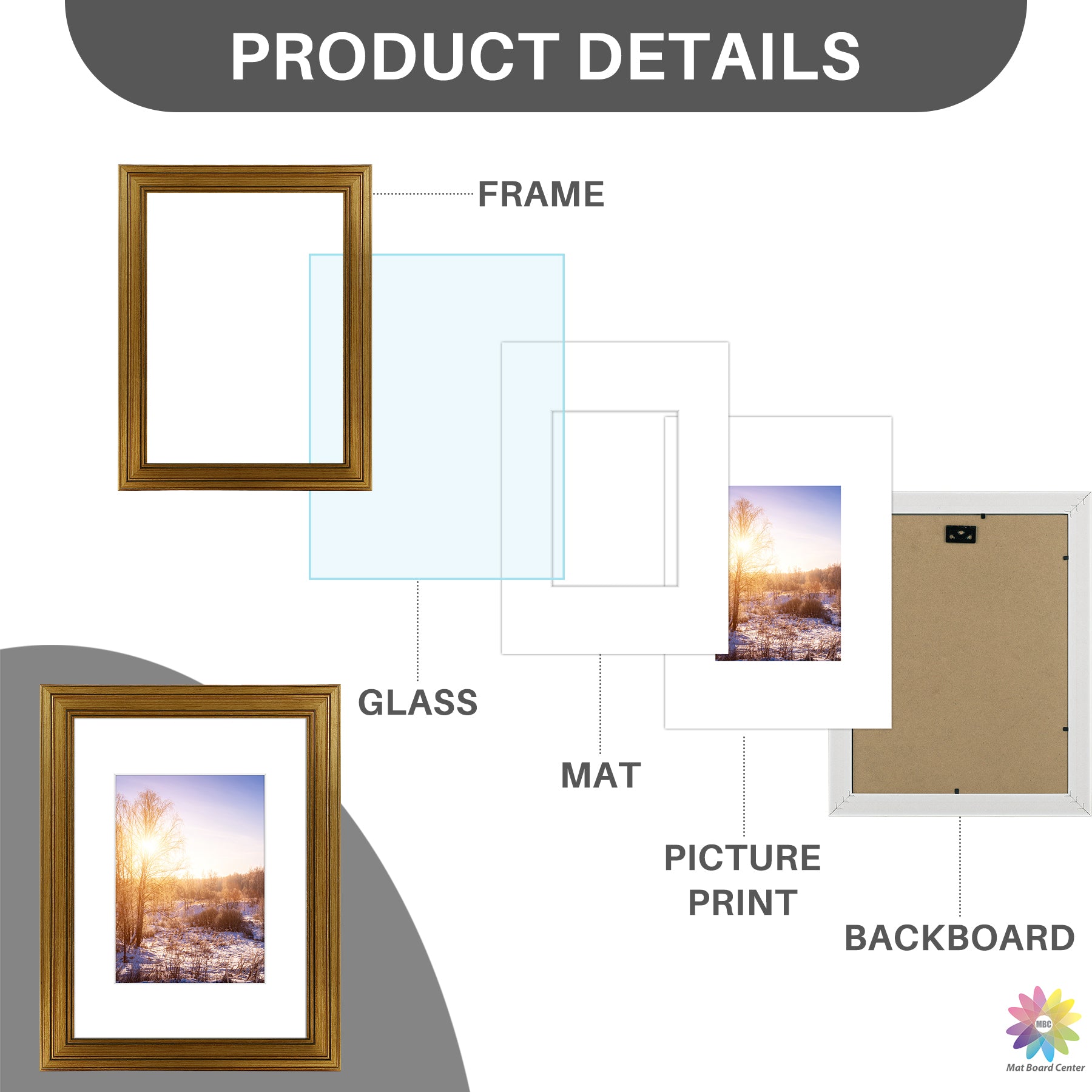 9x12 Picture Frame for 6x8 Picture with White Mat and Real Glass Dark Gold Color (10 Pcs per Box)