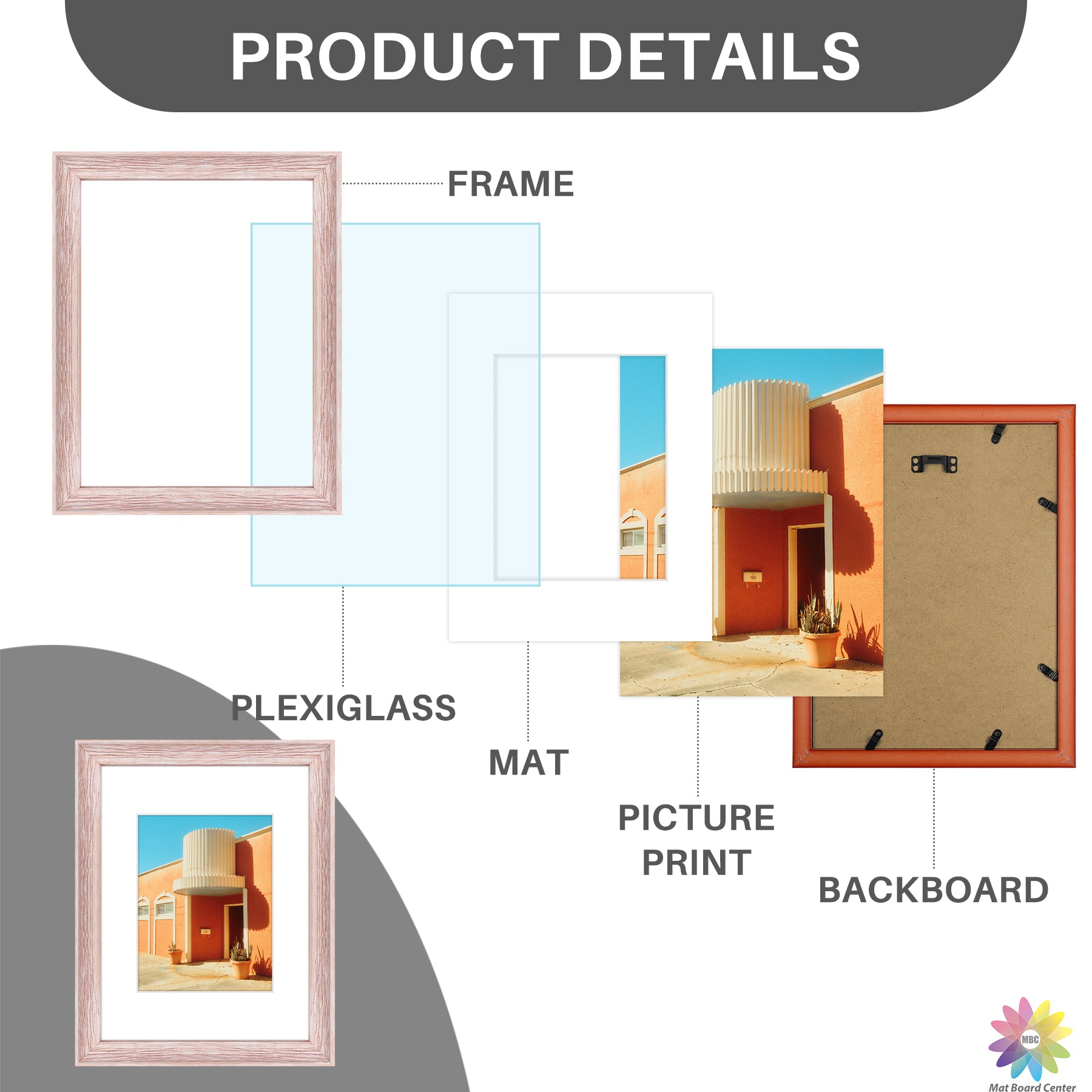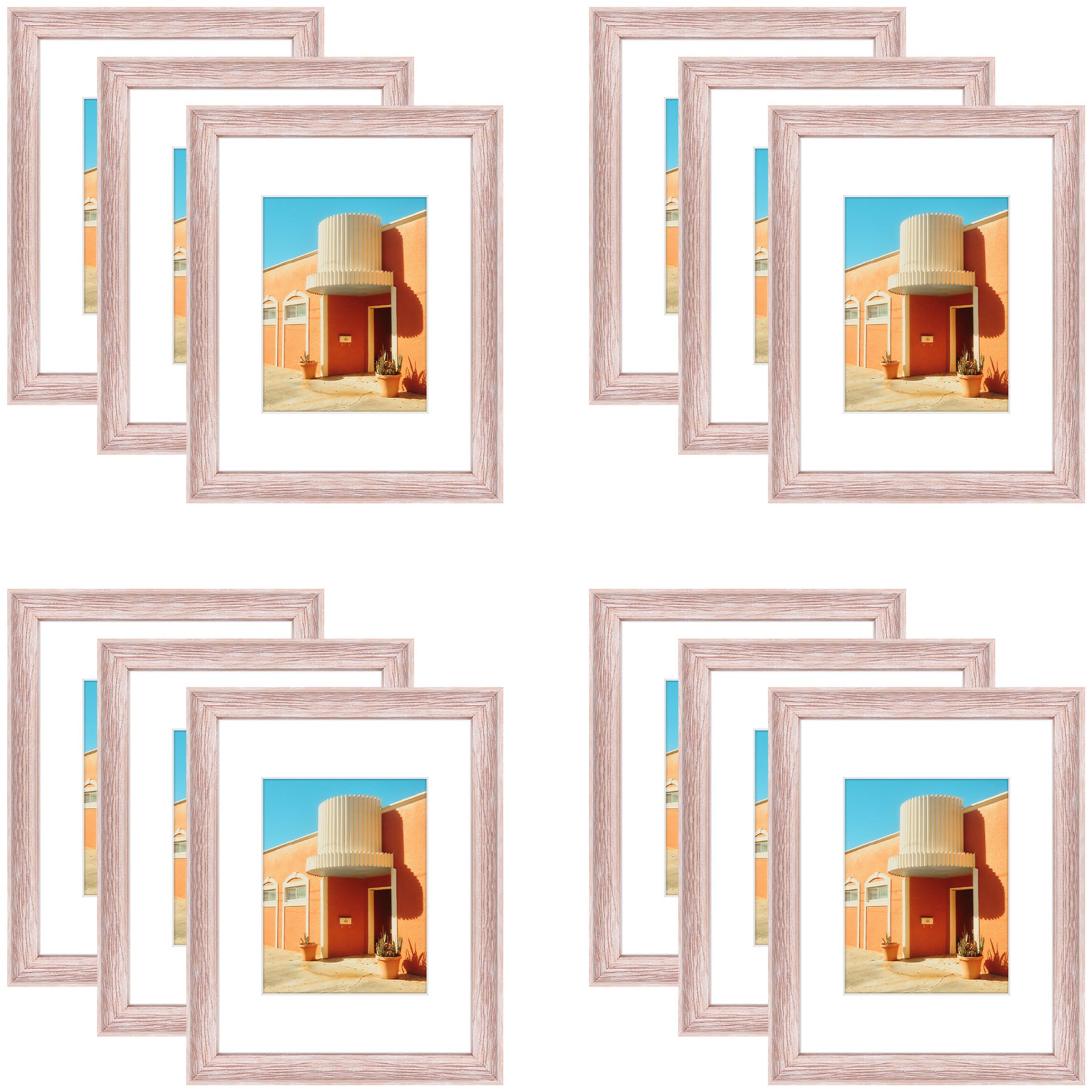 9x12 Picture Frame for 6x8 Photo with White Mat and Plexiglass (12 Pcs Per Box) Pink