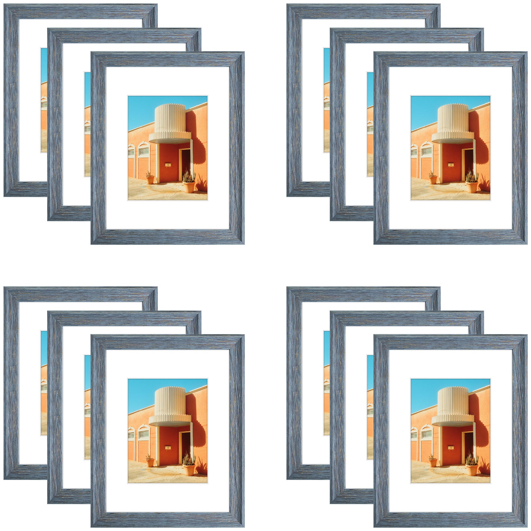 9x12 Picture Frame for 6x8 Photo with White Mat and Plexiglass (12 Pcs Per Box) Blue