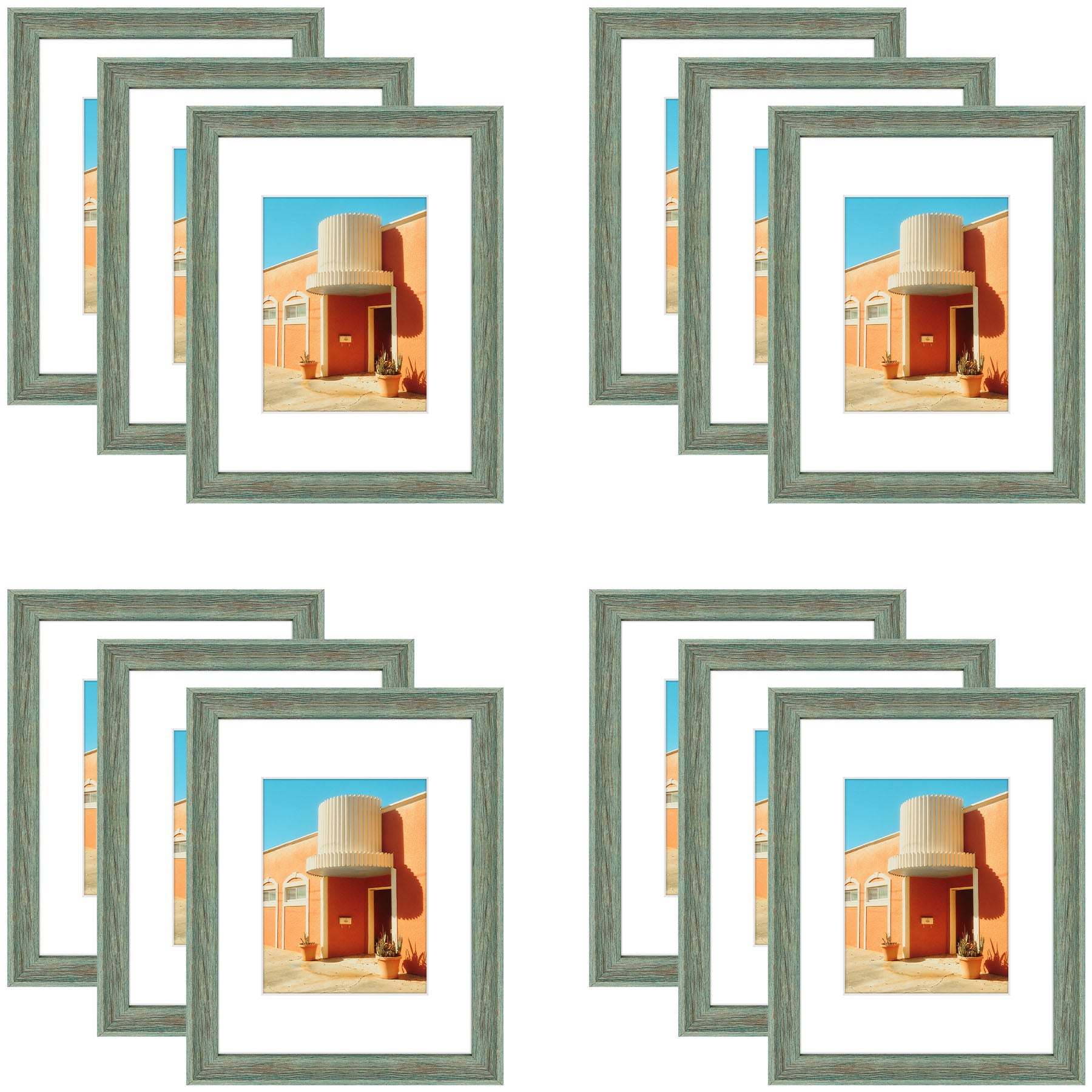 9x12 Picture Frame for 6x8 Photo with White Mat and Plexiglass (12 Pcs Per Box) Green