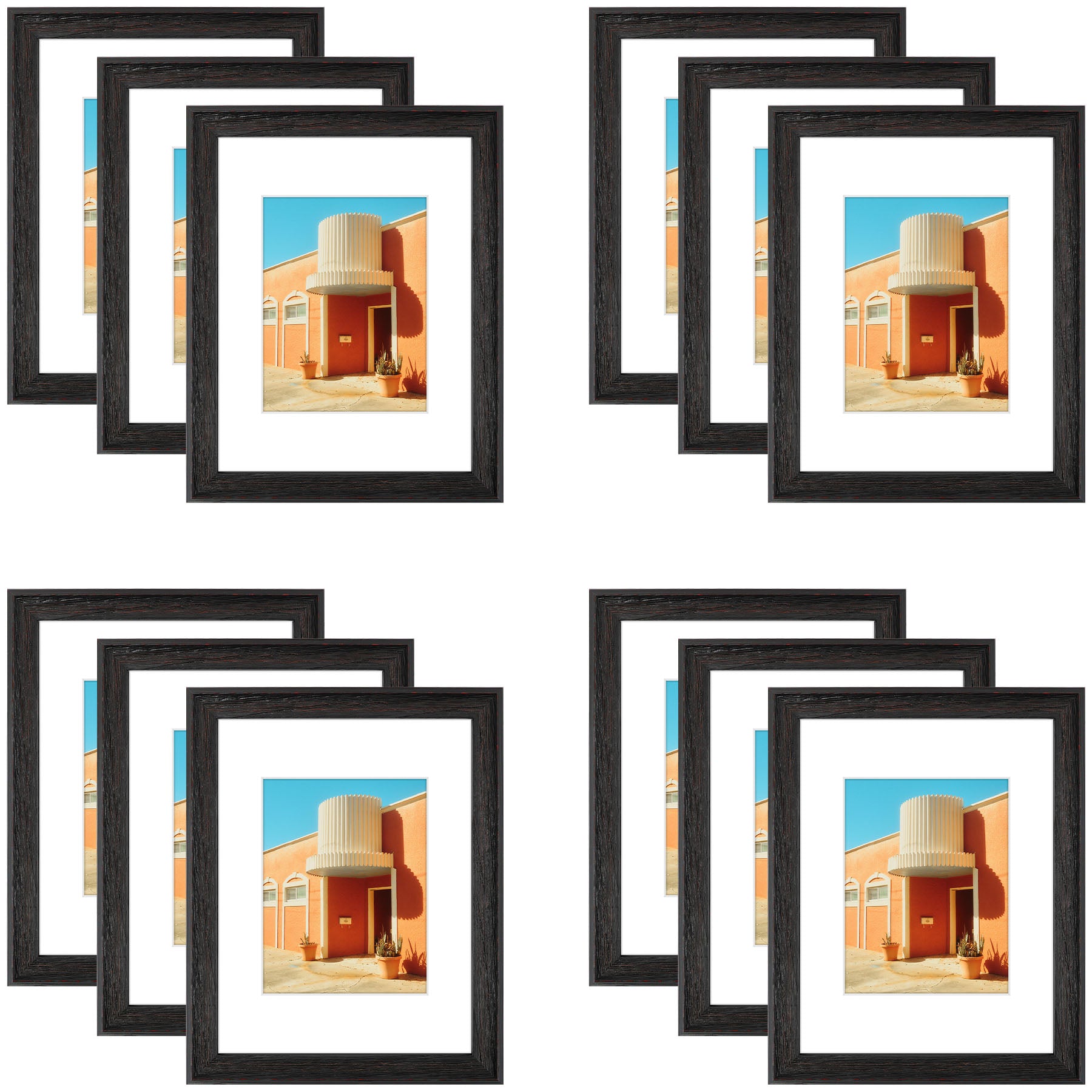 9x12 Picture Frame for 6x8 Photo with White Mat and Plexiglass (12 Pcs Per Box) Black