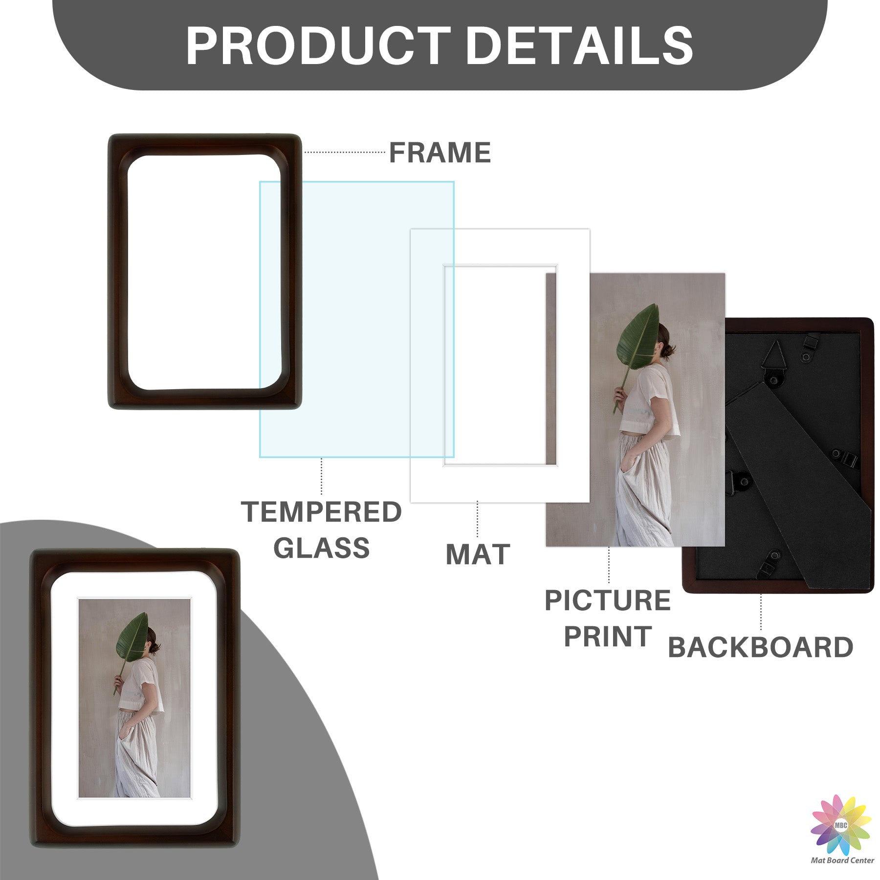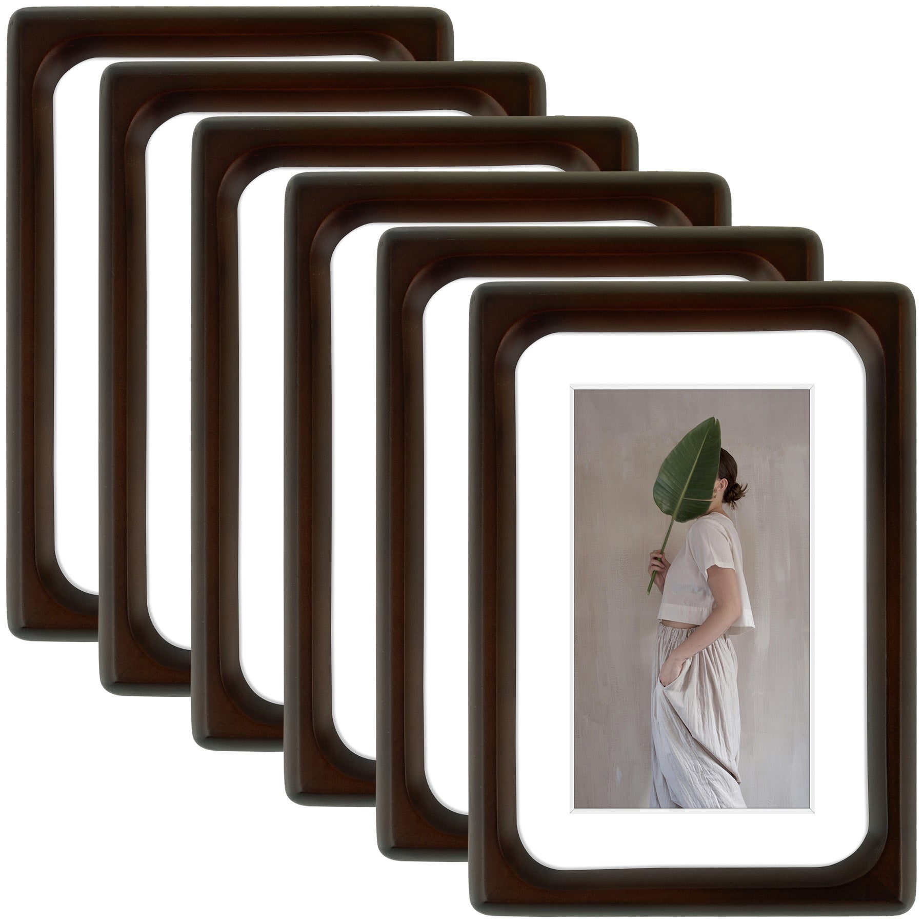 Rounded Corner 4x6 Wood Frame For 3x5 Photos With White Mat and Real Glass Brown (6 Pcs per Box)