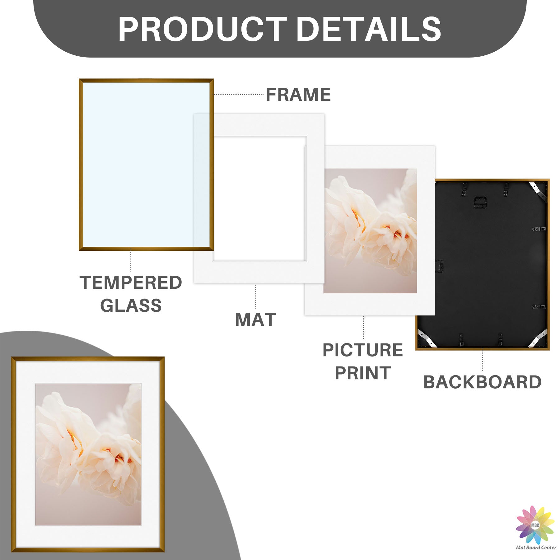 11x14 Aluminum Picture Frame With White Mat For 8.5x11 Photo Bronze(6 Pcs Per Box)