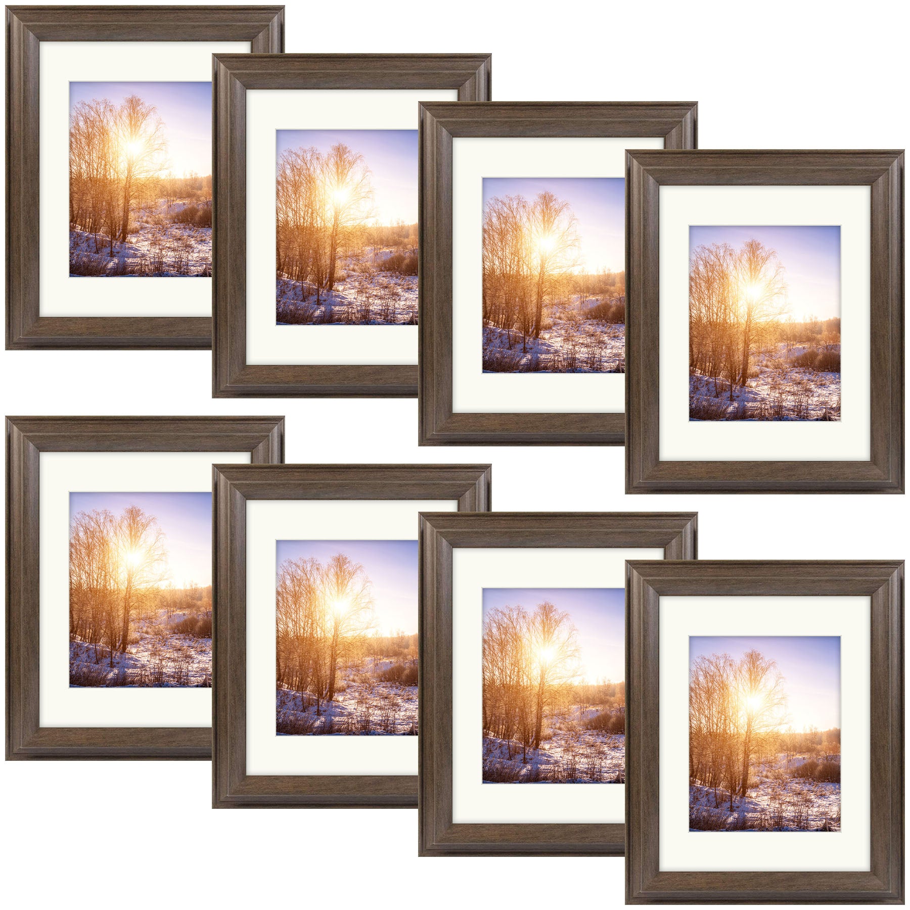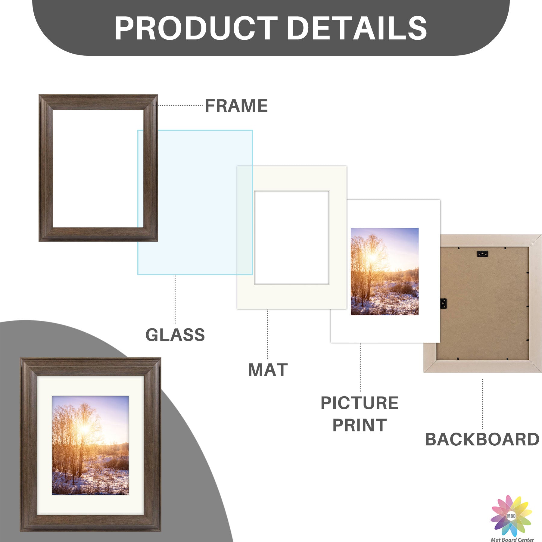 11x14 Picture Frame For 8x10 Picture With Ivory Mat & Real Glass Brown Color (8 Pcs Per Box)