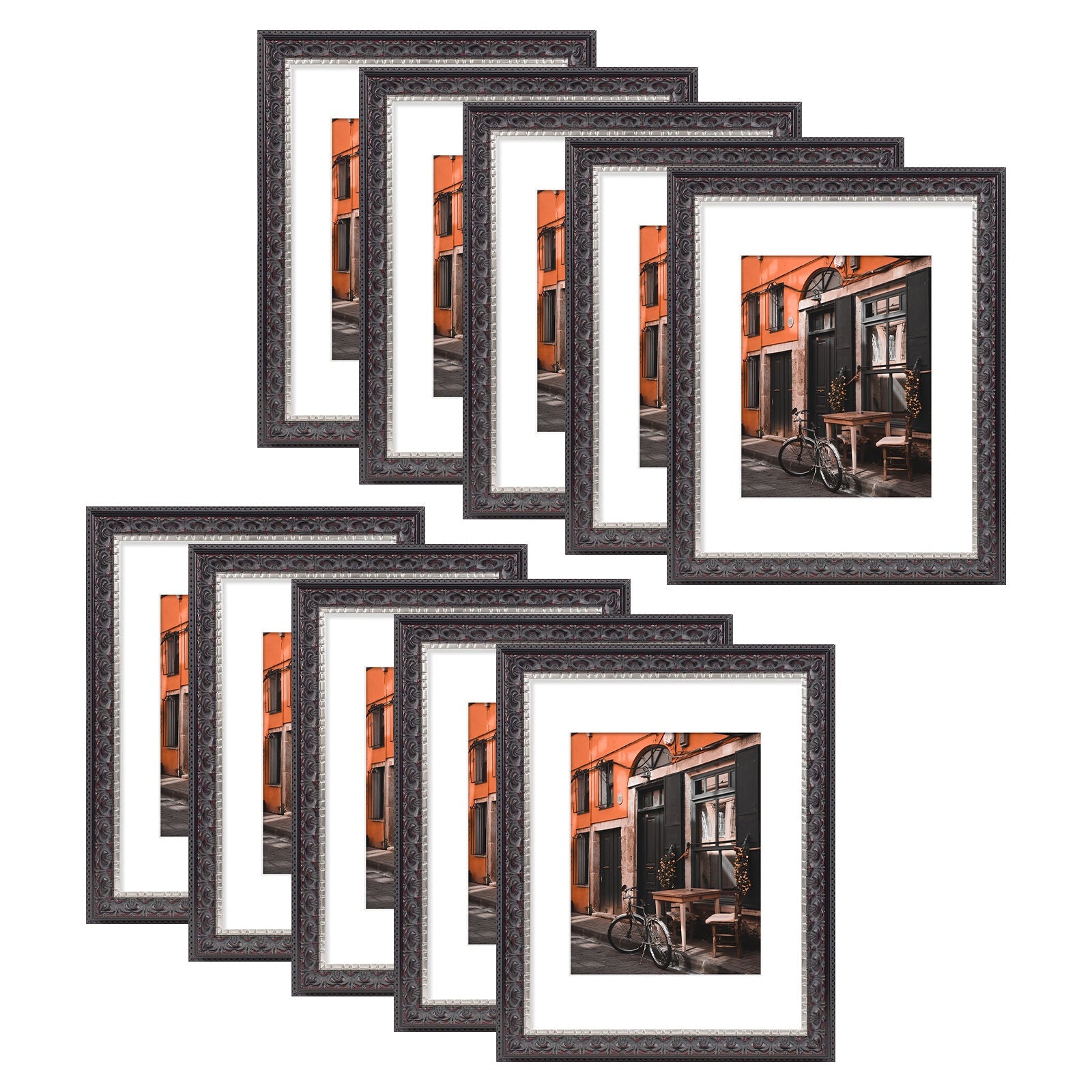11x14 Picture Frame with White Mat for 8x10 Picture (10 Pcs Per Box) Black With Silver & Burgundy