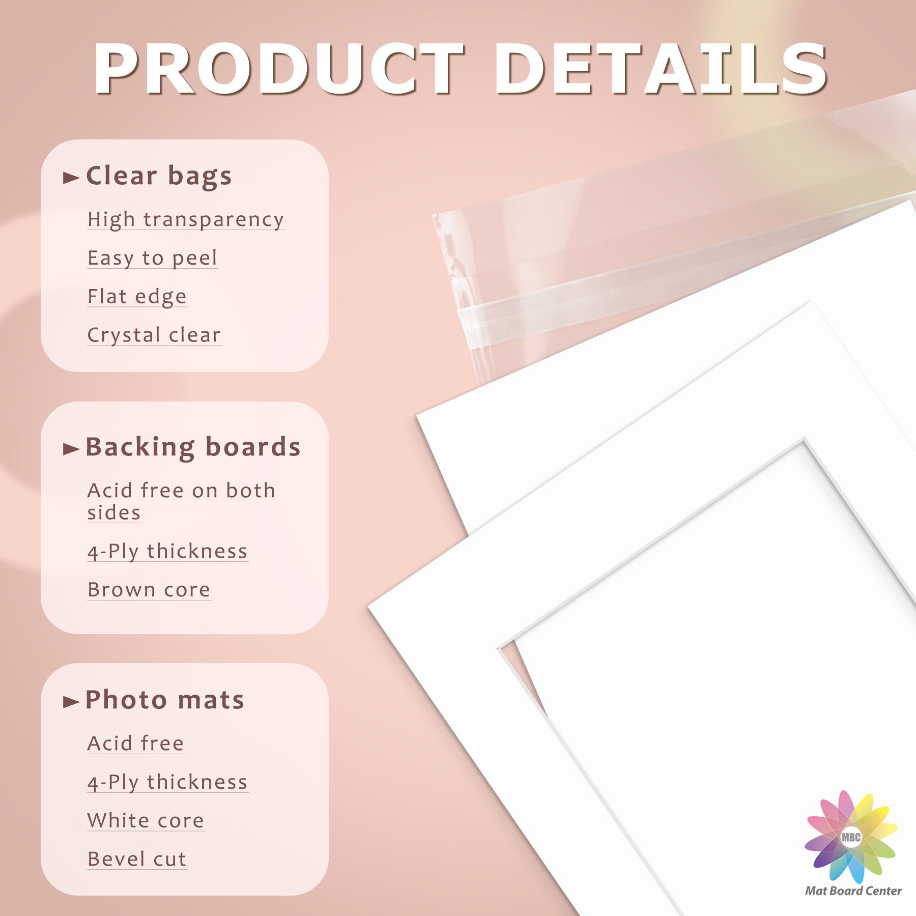 50 Pack 11x14 Whitecore Pre-Cut Mat Board + Backing + Bag 8x10 (7.5x9.5 exact opening) N229 Pink