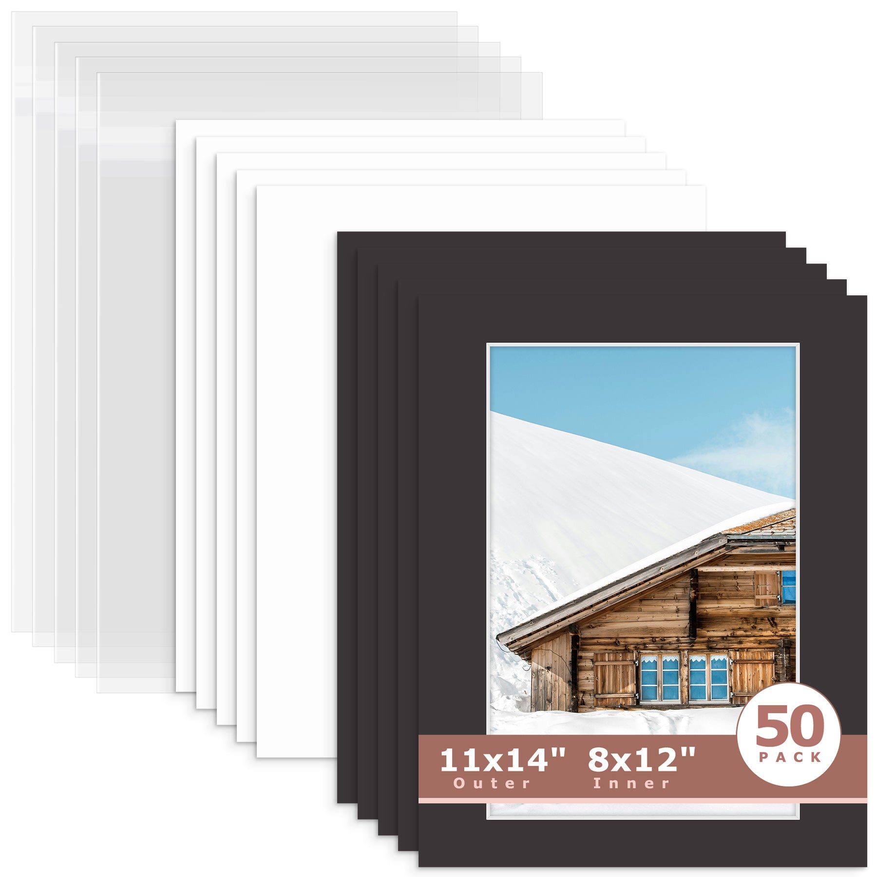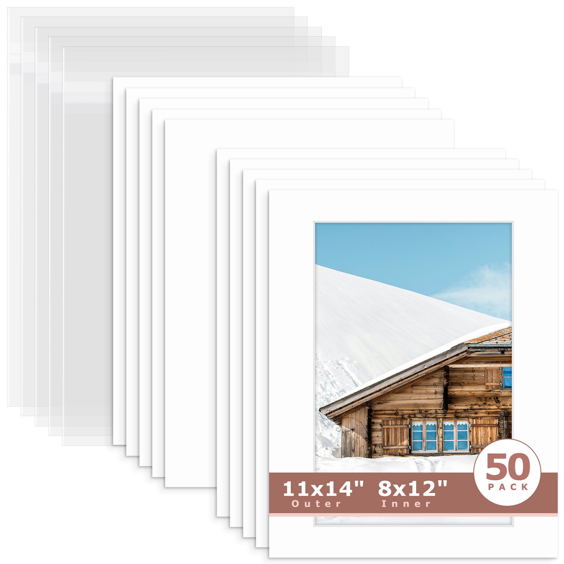 50 Pack 11x14 Whitecore Pre-Cut Mat Board + Backing + Bag